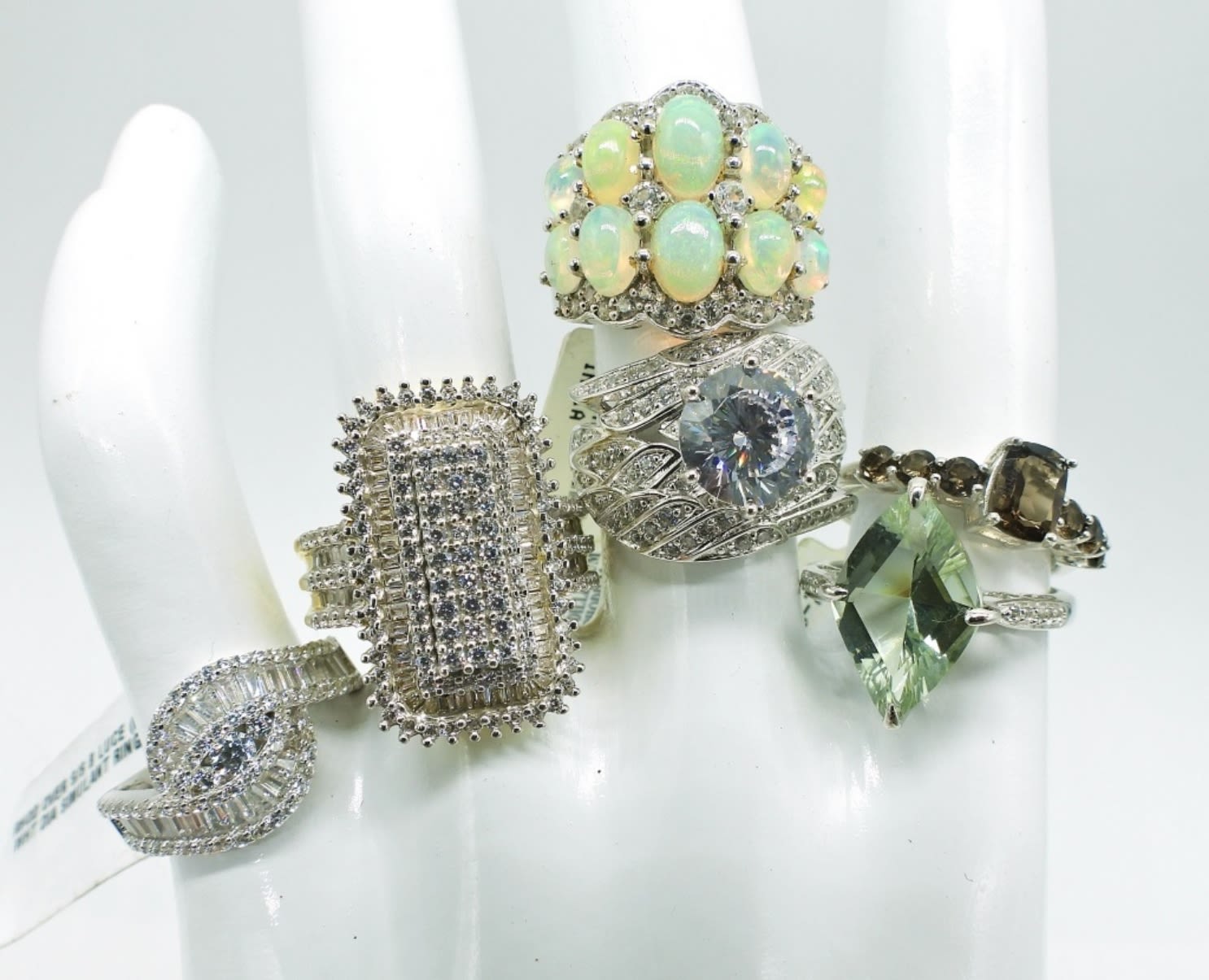 Various size 6-7. Opal, smokey quartz, and more. Beautiful set of rings!