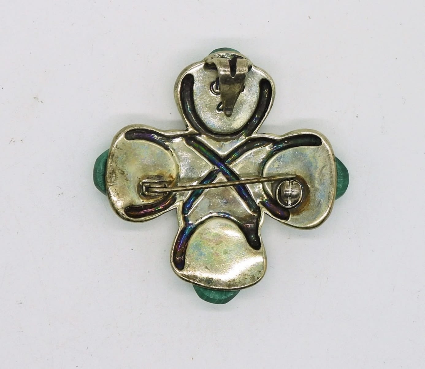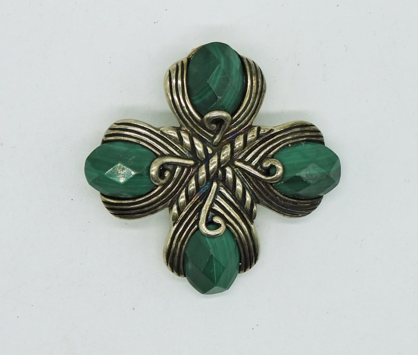 Measures 1.25 inches square and features faceted malachite stones. DWT 16.3