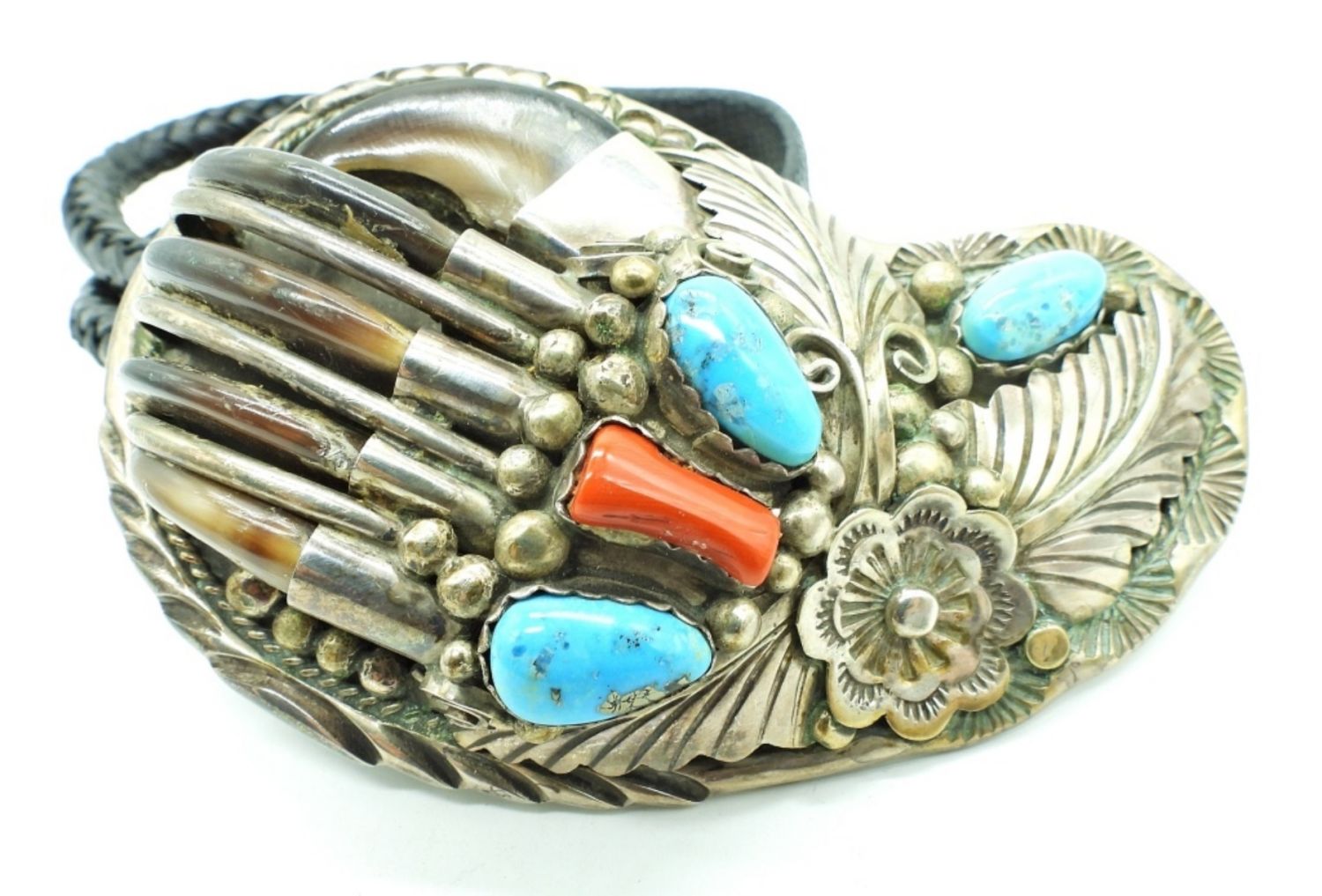 Navajo Handmade with turquoise, red jasper, and animal claws with animal claw tie ends. DWT 86.2