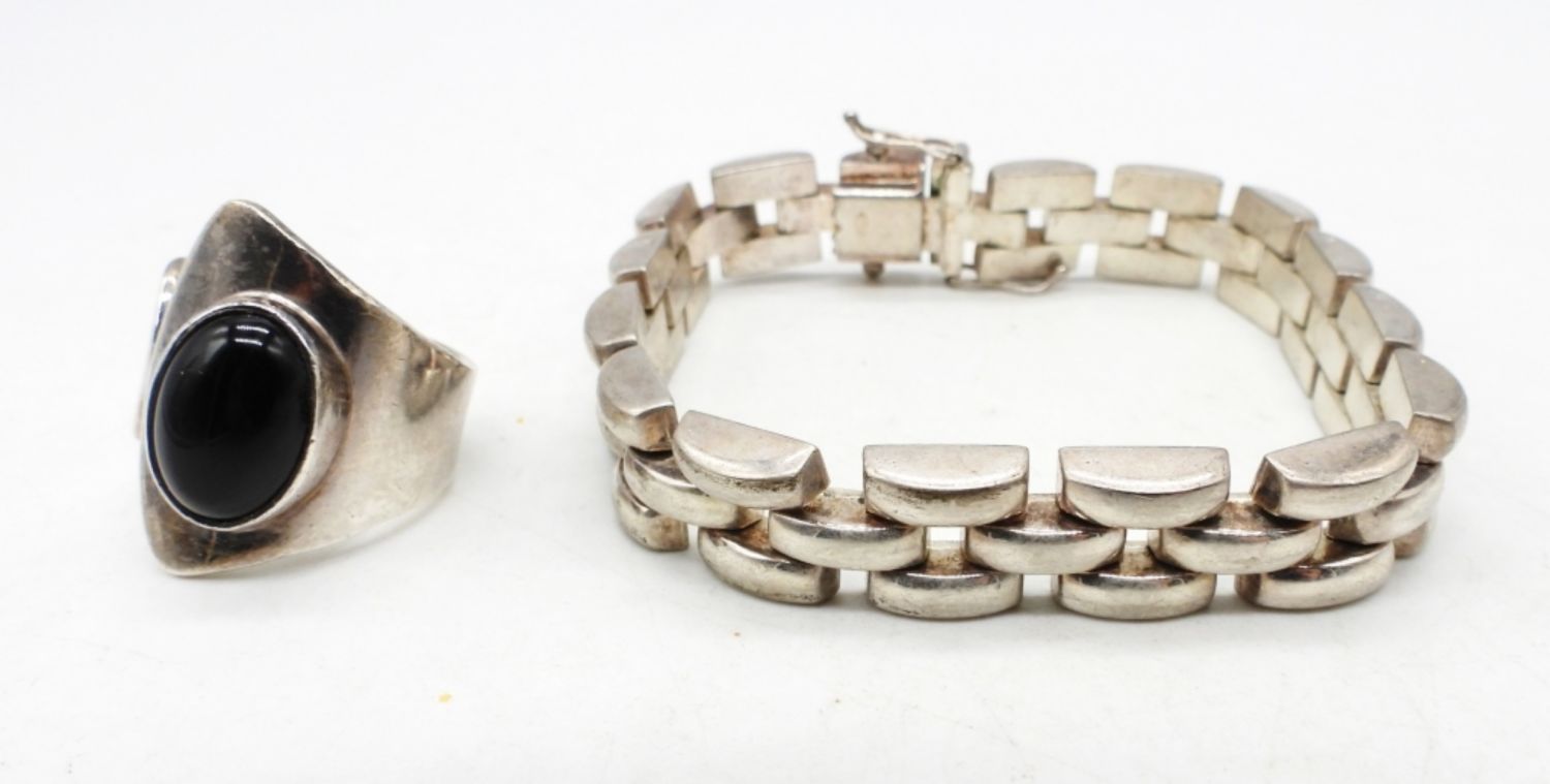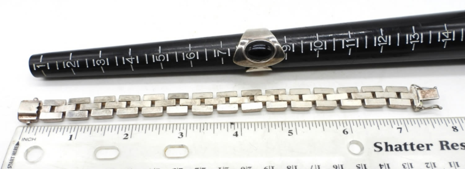 23DWT, 1- BRACELET 8″ LONG STAMPED 925, BLACK ONYX RING SIZE 8, STAMPED 925 MEXICO