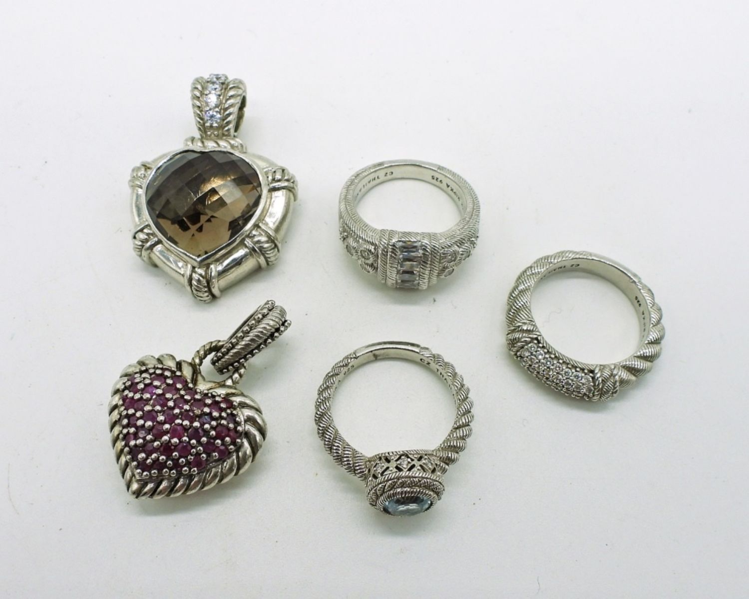 Rings all size 6. Two heart shaped pendants that measure 1.25-1.50 inches. DWT 25.6