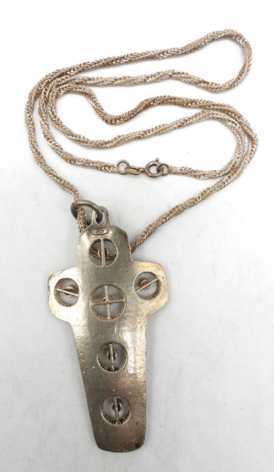 18DWT, 24″ LONG, STAMPED 925 ON BACK OF THE CROSS
