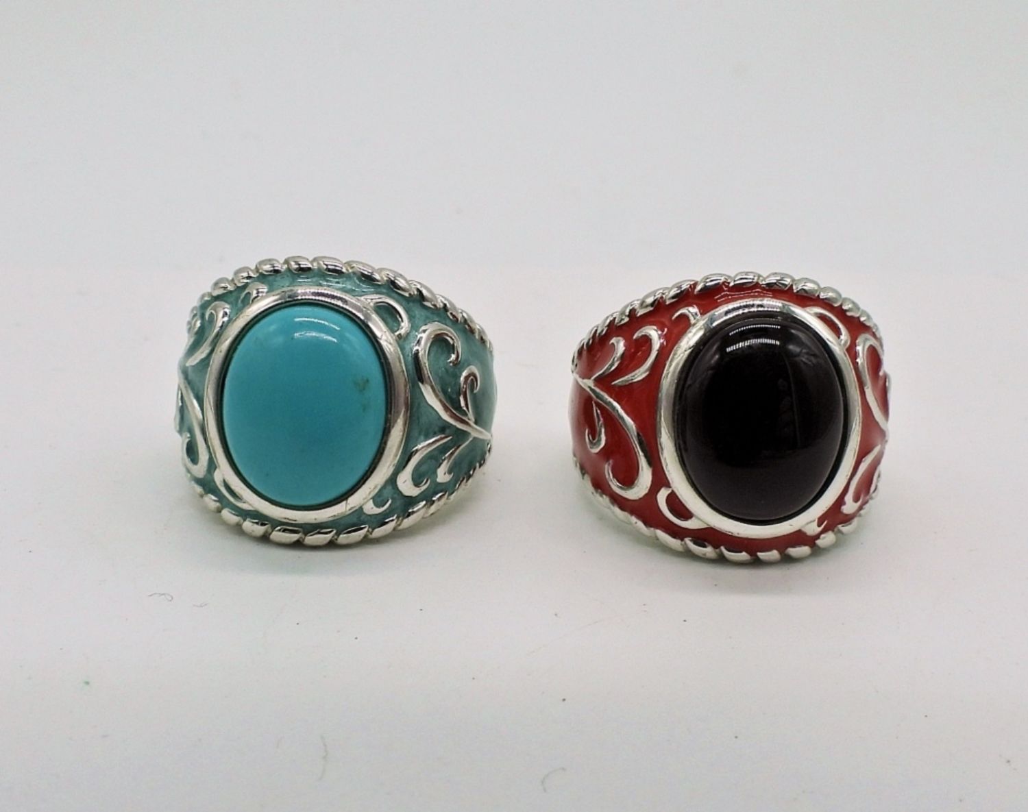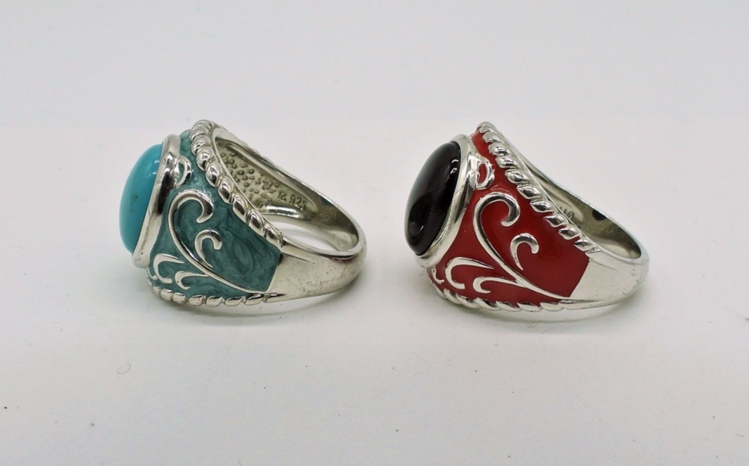 Two sterling gemstone rings, size 7 with colored enamel – DWT 11.4