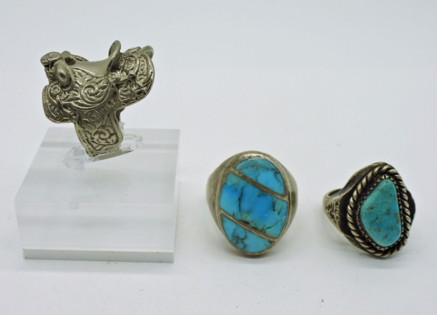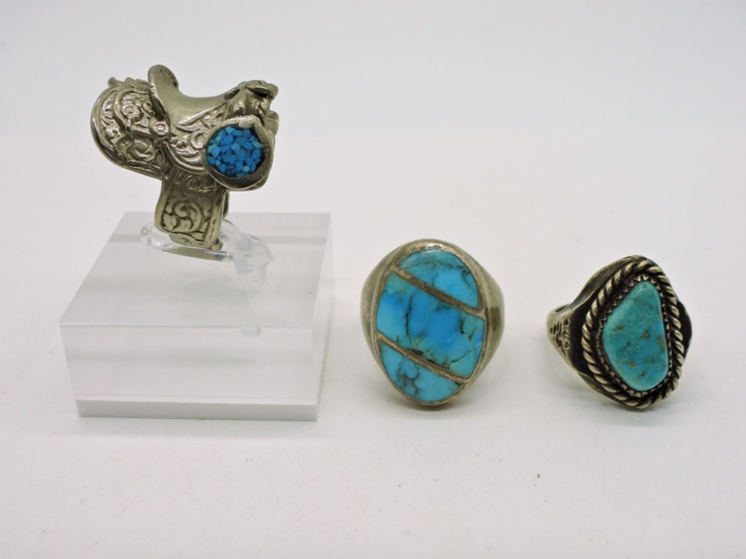 Three rings sizes 9-10. Turquoise stone. Very unique! DWT 25.9
