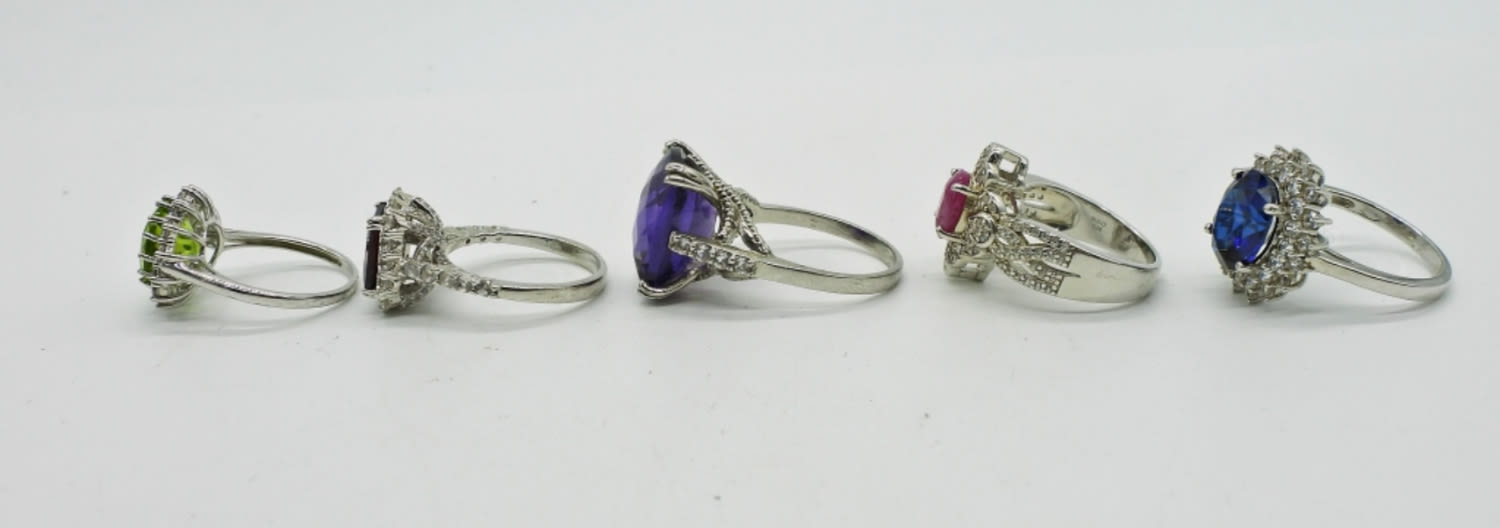 Multi Colored, Sterling Gemstone Rings, Set of 5. Sizes 6, 7 & 8 – DWT 14.6