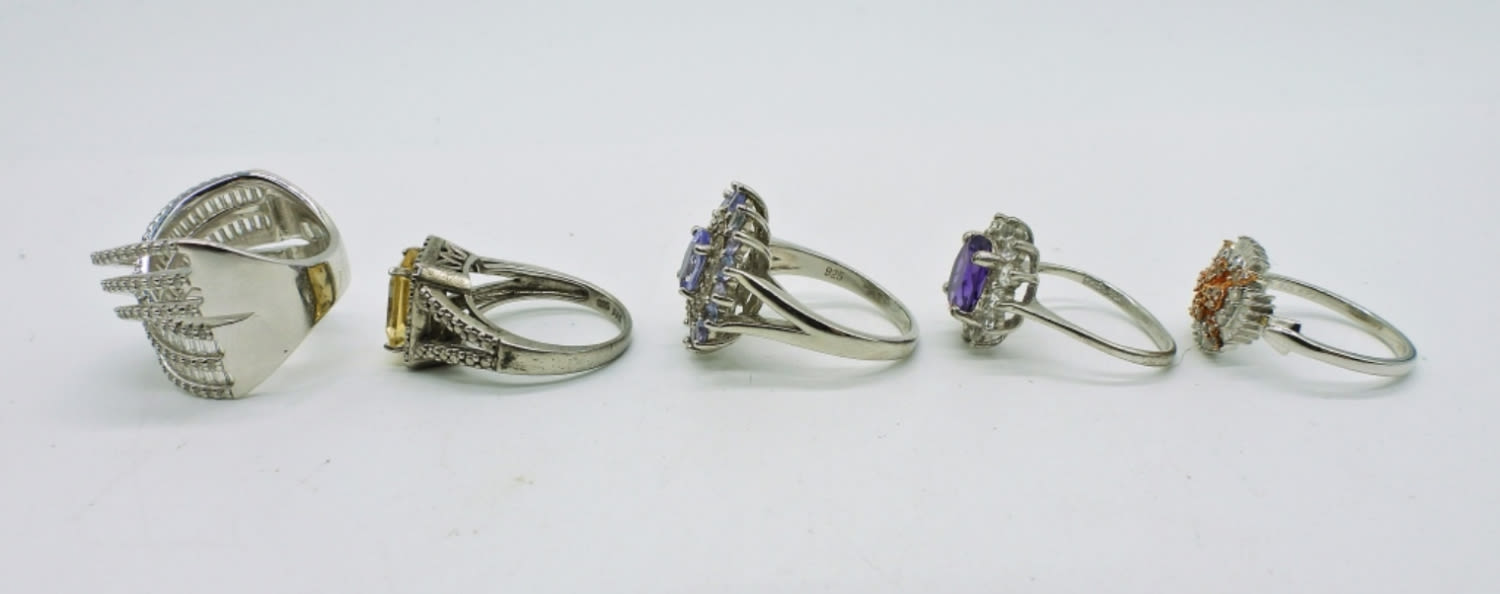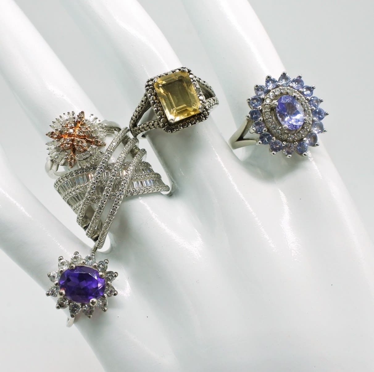Five Sterling Multi Colored Gemstone Rings, Sizes 6 & 7 – DWT 14.5