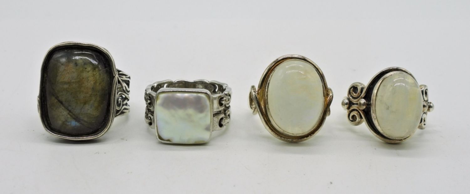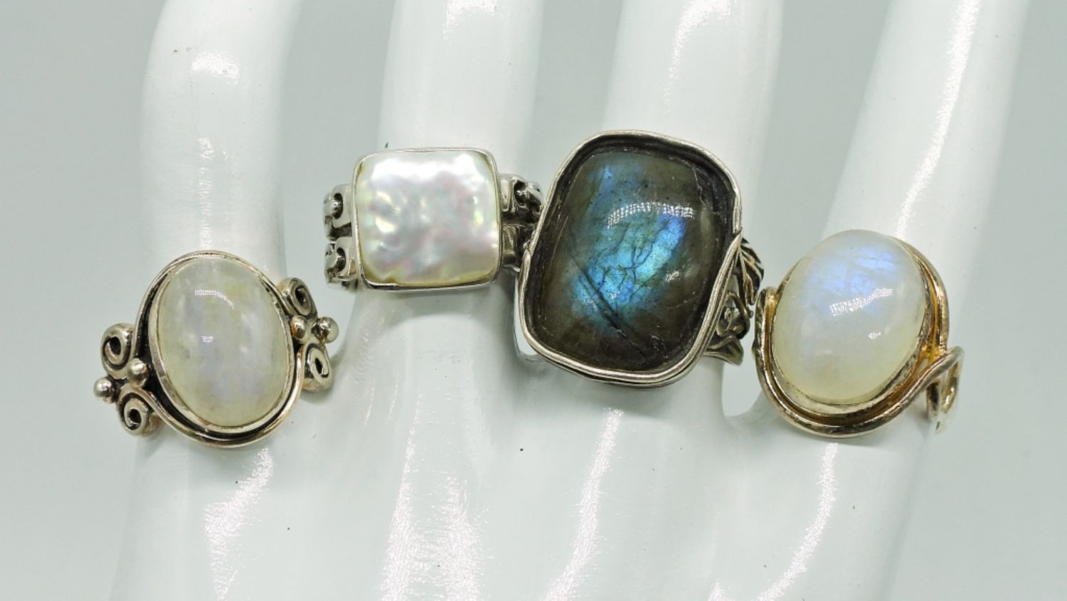 Sizes 6-7. Labradorite, Rainbow moonstone, and shell. Beautiful! DWT 18.1