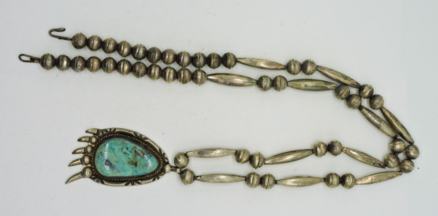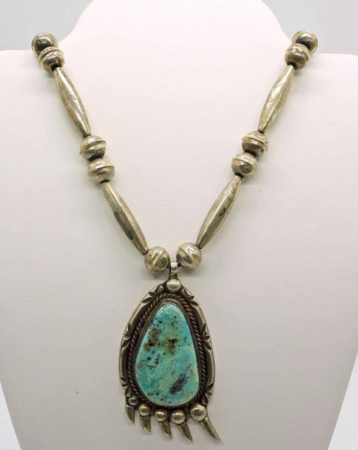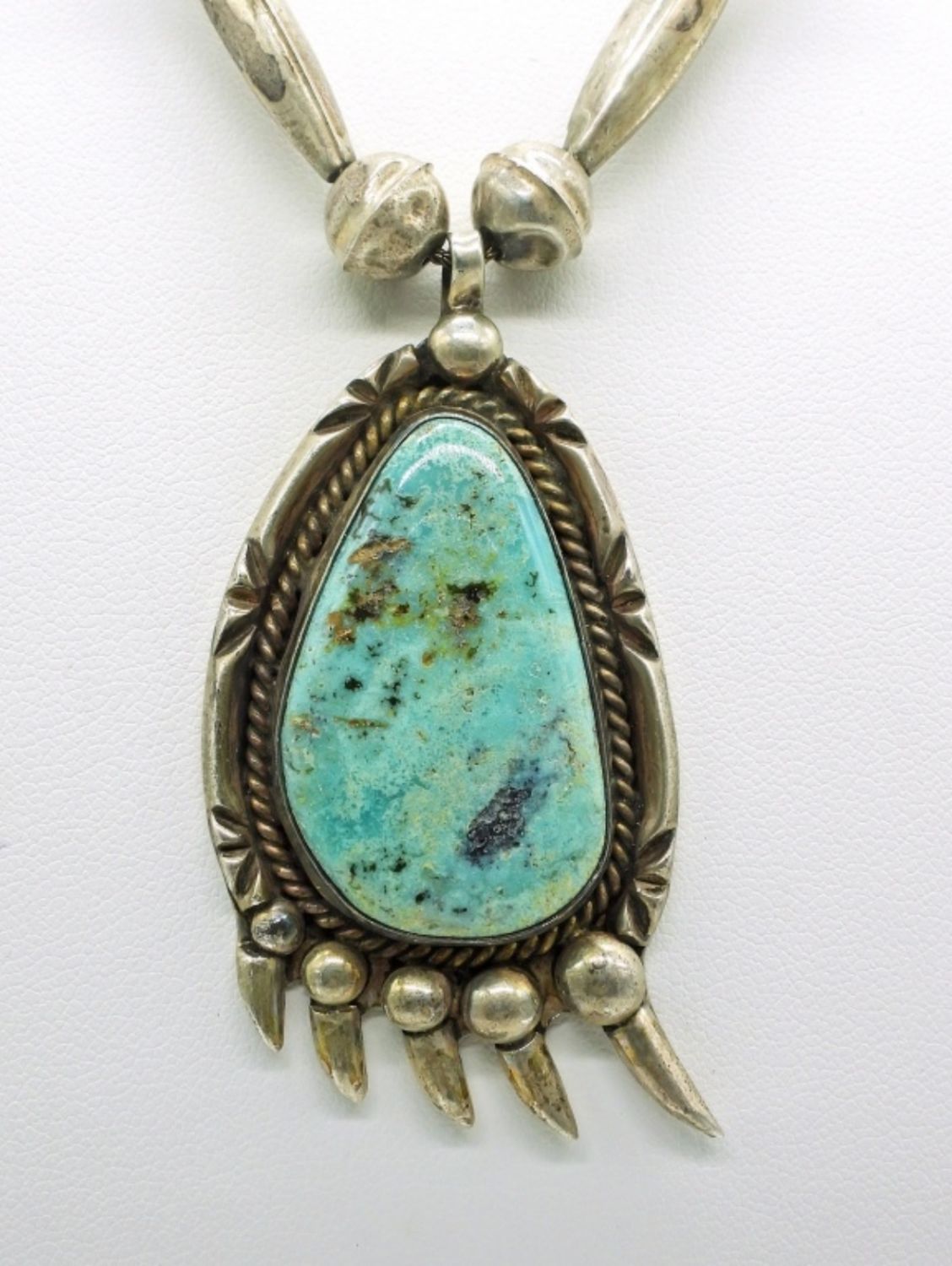 Sterling Vintage Navajo Bear Claw Turquoise Necklace, 15 inches DWT 33.2