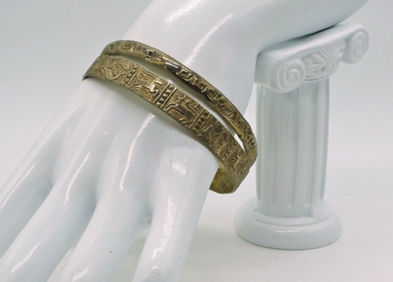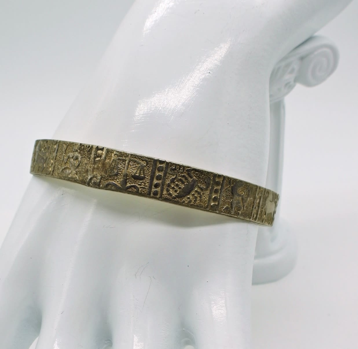 Sterling Bangle Bracelet with Etched Zodiac Signs & one thin sterling bangle DWT 24.4