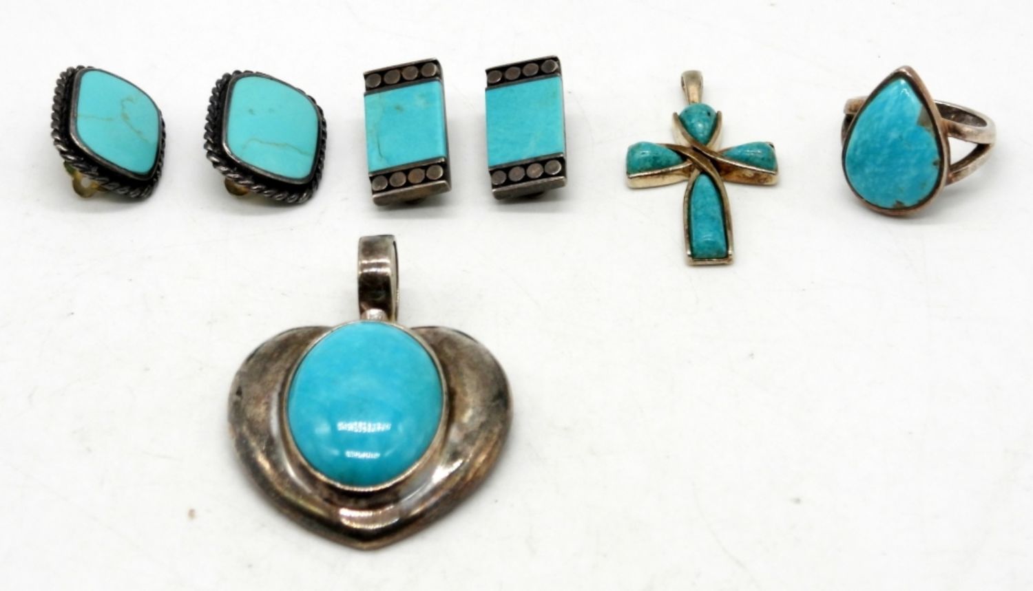 (2) CLIP-ON EARRINGS, (1) PENDANT HEART SHAPE ESPO SIG .925, CROSS PENDANT, RING SIZE 5.5 (28 DWT)