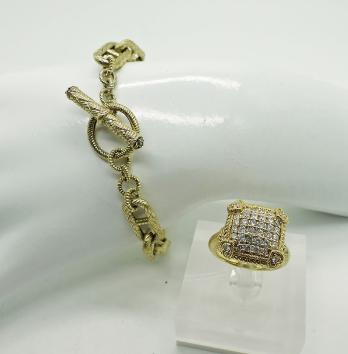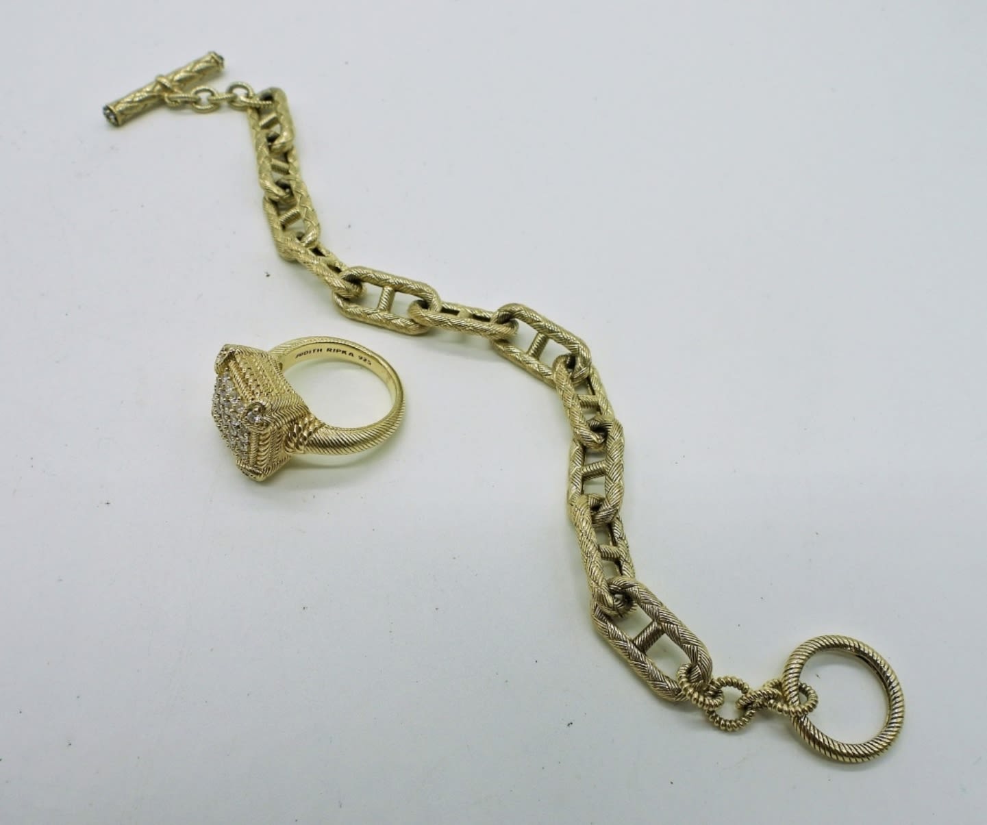 Gold tone 925 ring size 6 and 7 inch bracelet. Lovely and unique set! (DWT 19.6)