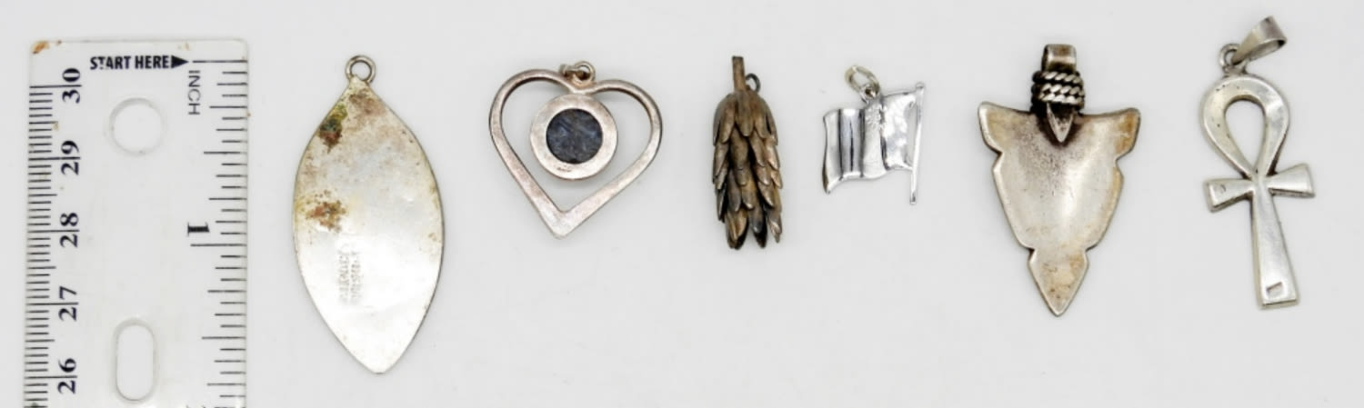 TURQUOISE, ABALONE INLAY, NATURAL STONE & MORE – ALL DIFFERENT; STAMPED 925, ALPACA MEXICO, BEAU STERLING; 15 DWT