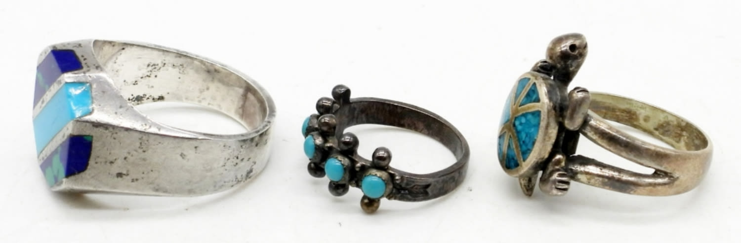TURQUOISE NATURAL STONE INLAY, STAMPED STERLING, MEXICO 925, SIZES 4, 6, & 9, 15 DWT