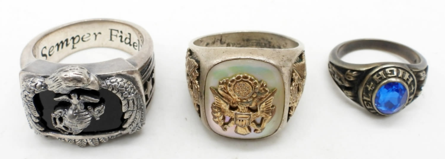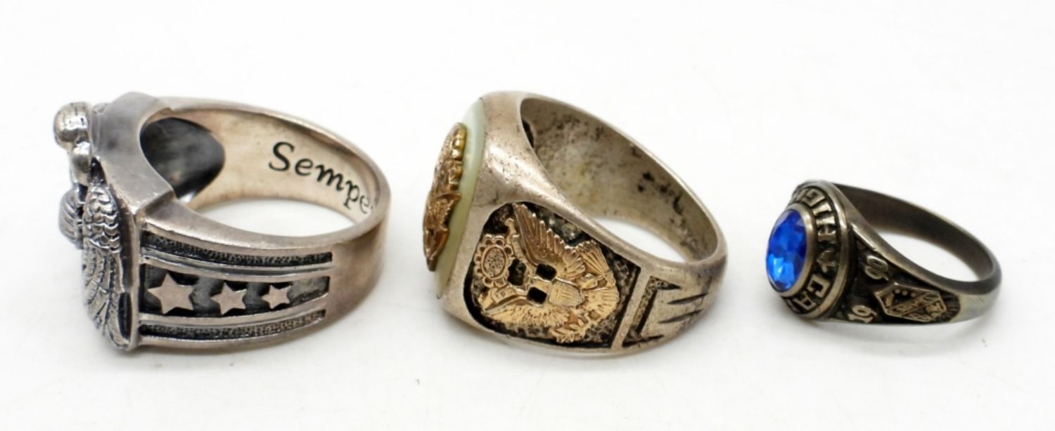 USMC ENGRAVED SEMPER FIDELIS & MORE; SIZES 6, 10, 12; STAMPED STERLING; 25.5 DWT