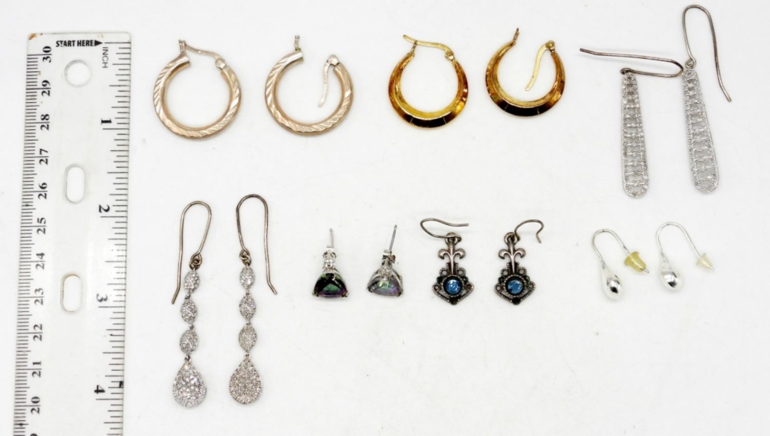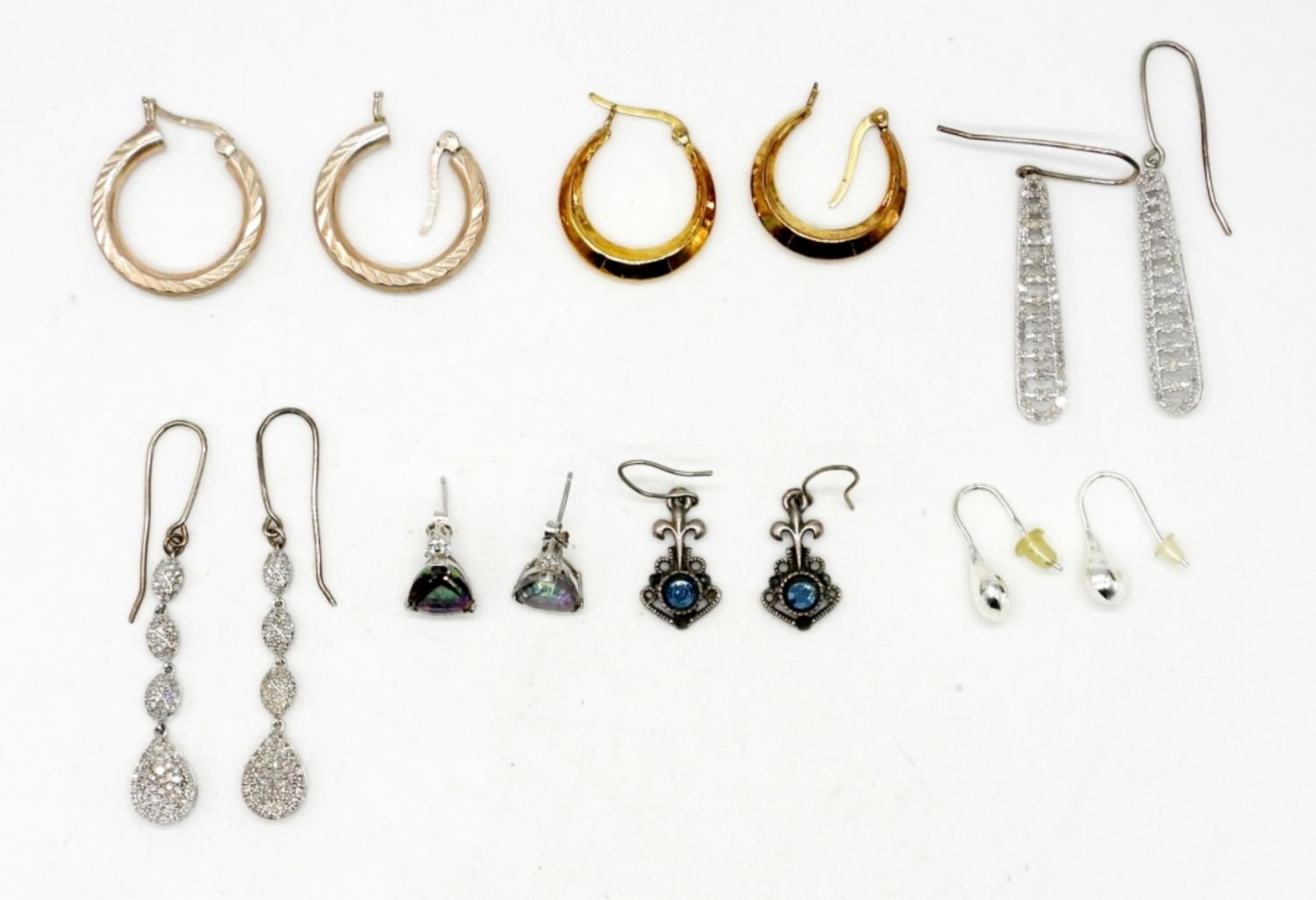HOOPS, RHINESTONES & MORE – ALL PIERCED; STAMPED 925; 15 DWT