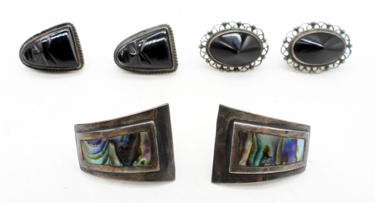 (1) CARVED WARRIOR FACE, (1) ABALONE, (1) BLACK ONYX – (12 DWT)