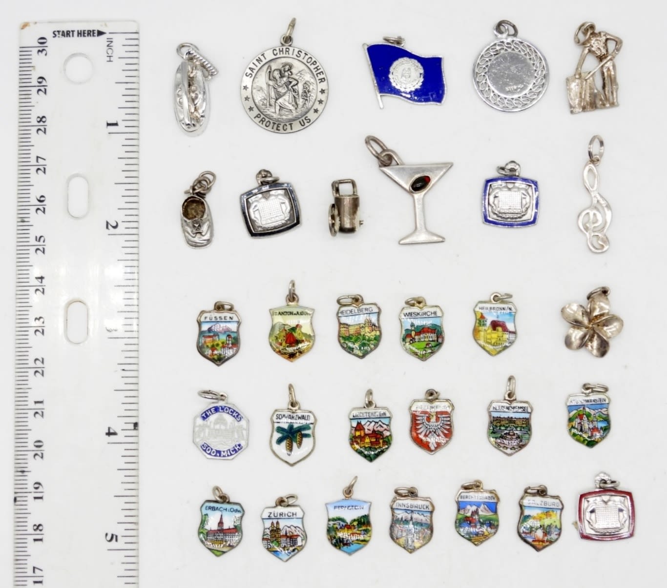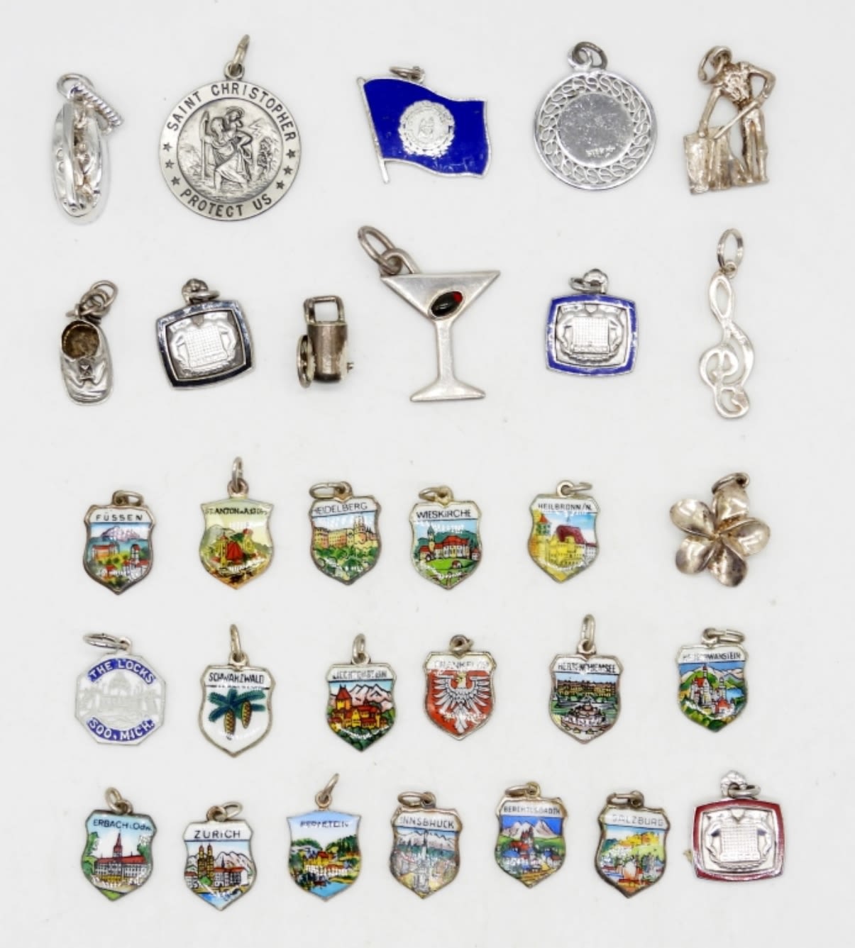 BIG VARIETY – SEVERAL FOREIGN ENAMEL DESTINATION CHARMS (30 DWT)