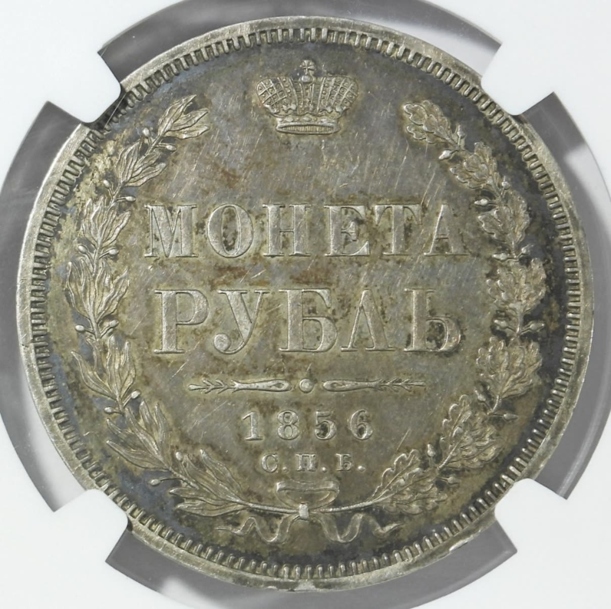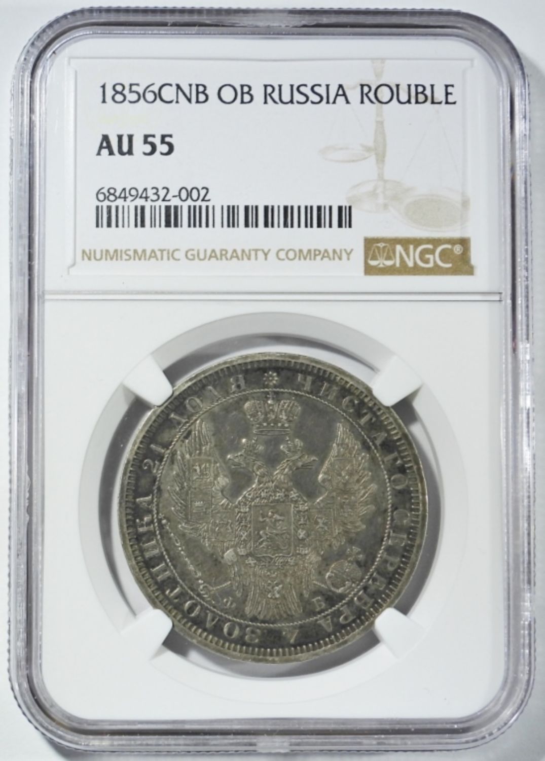 1856 CNB OB RUSSIA ROUBLE NGC AU-55