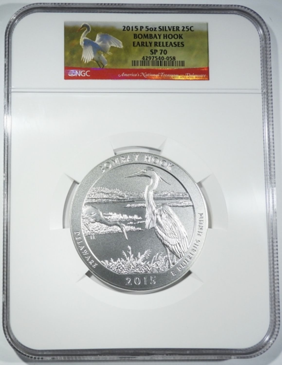 DELAWARE. EARLY RELEASES. ATB 5oz .999 SILVER QUARTER