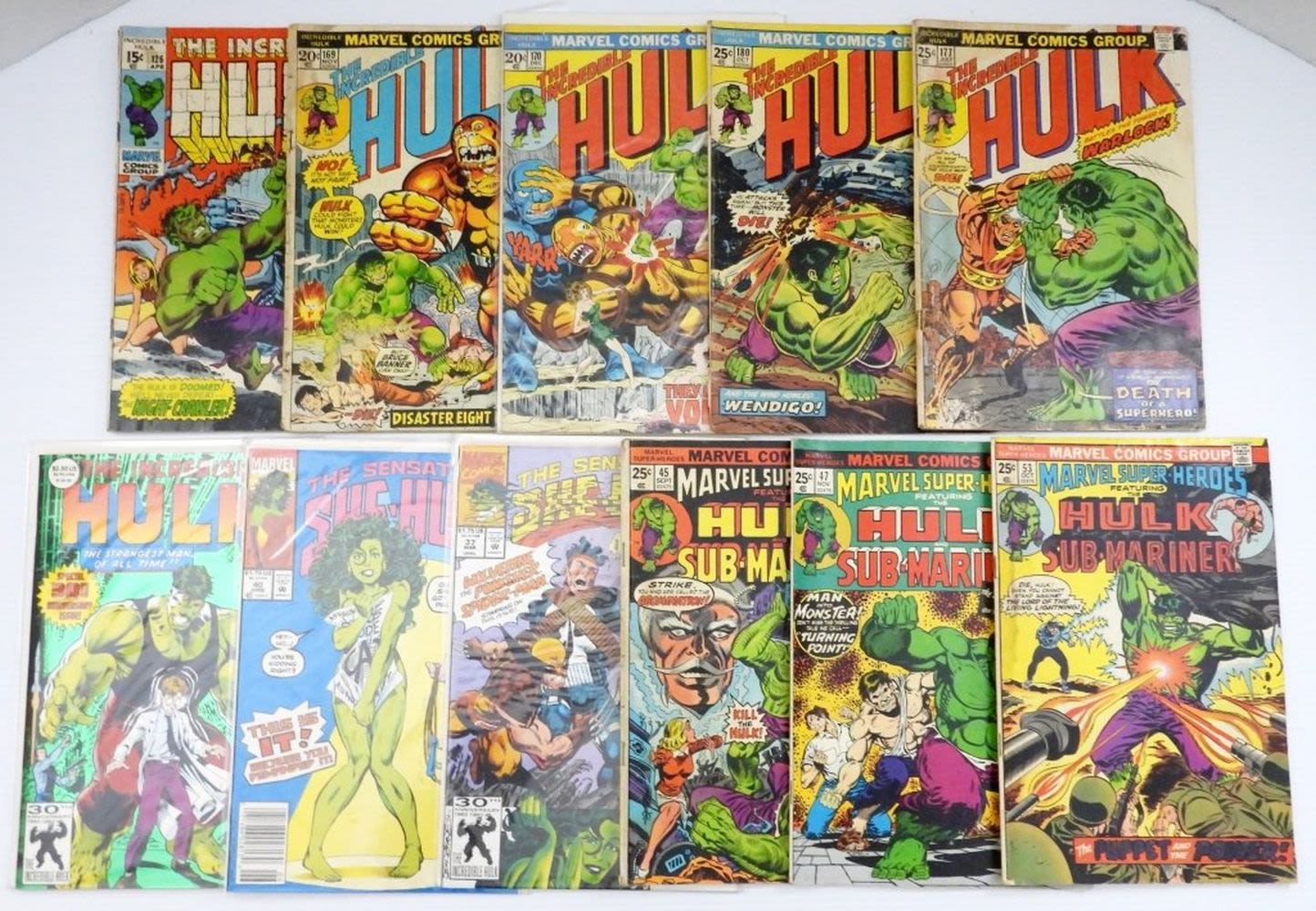 THE INCREDIBLE HULK #126, 169, 170, 177, 80, #393 30th ANNIV; SHE-HULK #37 & #40 XFs; MARVEL SUPER-HEROES HULK #5, 47, 53 VGs/GOODS