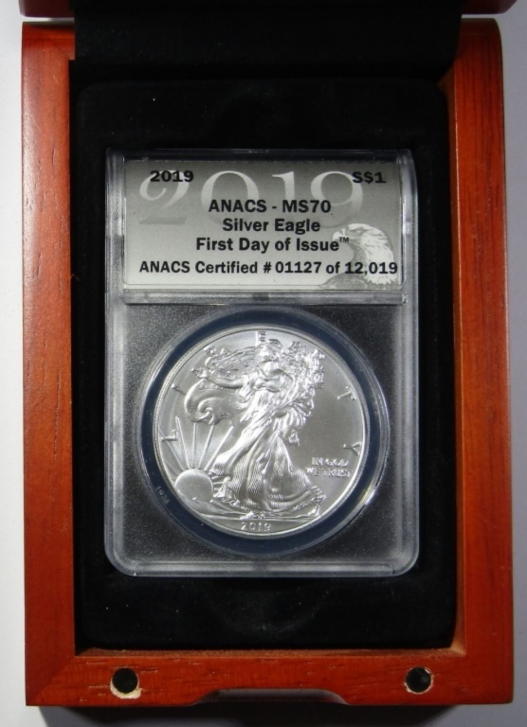 FIRST DAY OF ISSUE. IN WOODEN DISPLAY CASE.