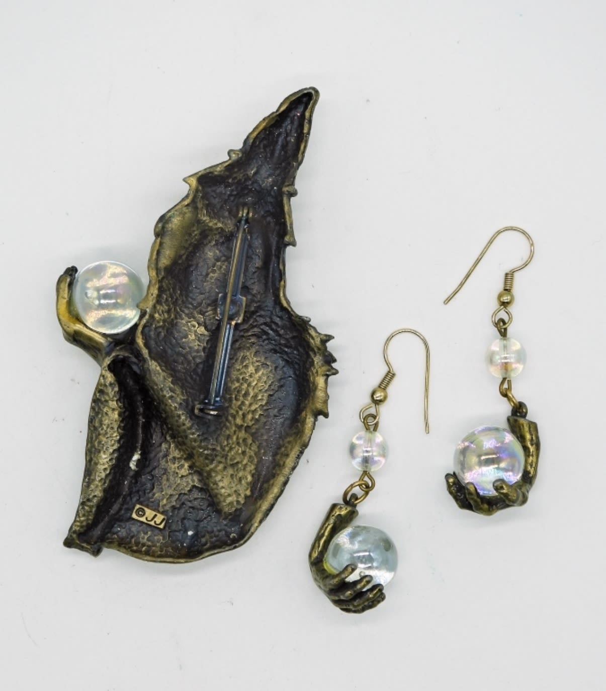 3.75 inches long with matching earrings. Stamped ©JJ
