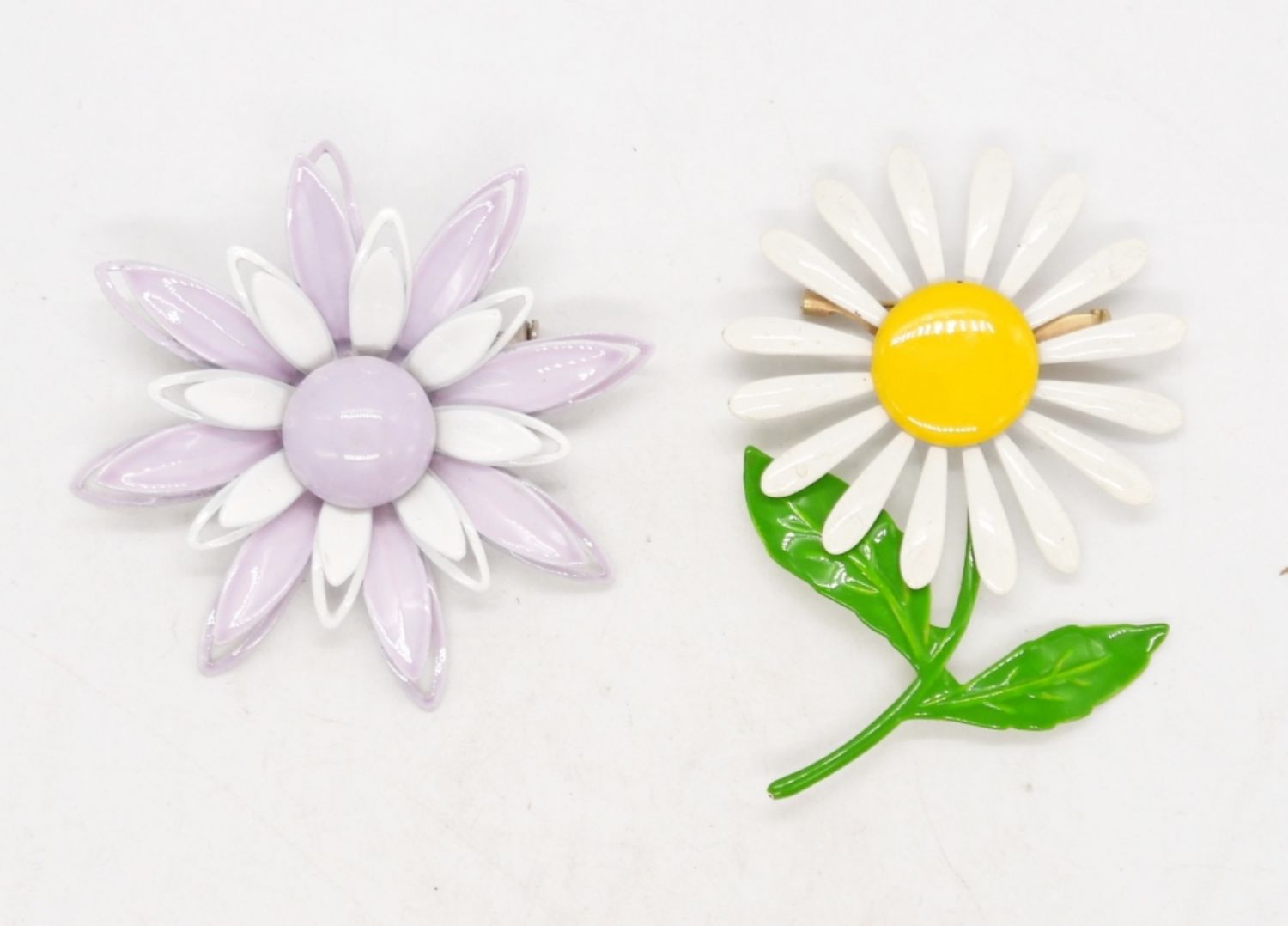 VINTAGE METAL 1960’s RETRO ENAMEL DAISY FLOWER PIN, CHEERFUL FLOWER FASHION BROOCH