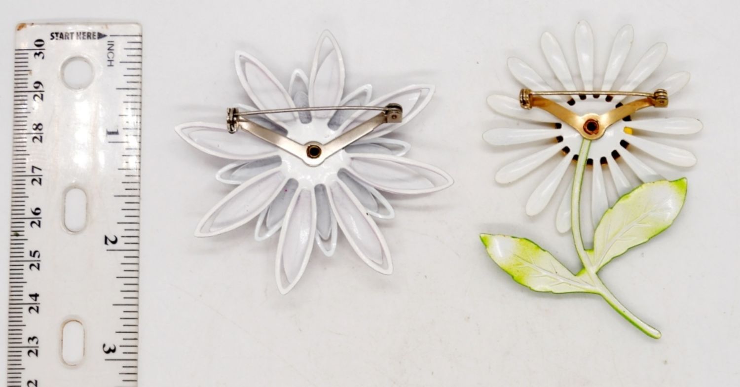 (2) VINTAGE METAL RETRO FLOWER PINS
