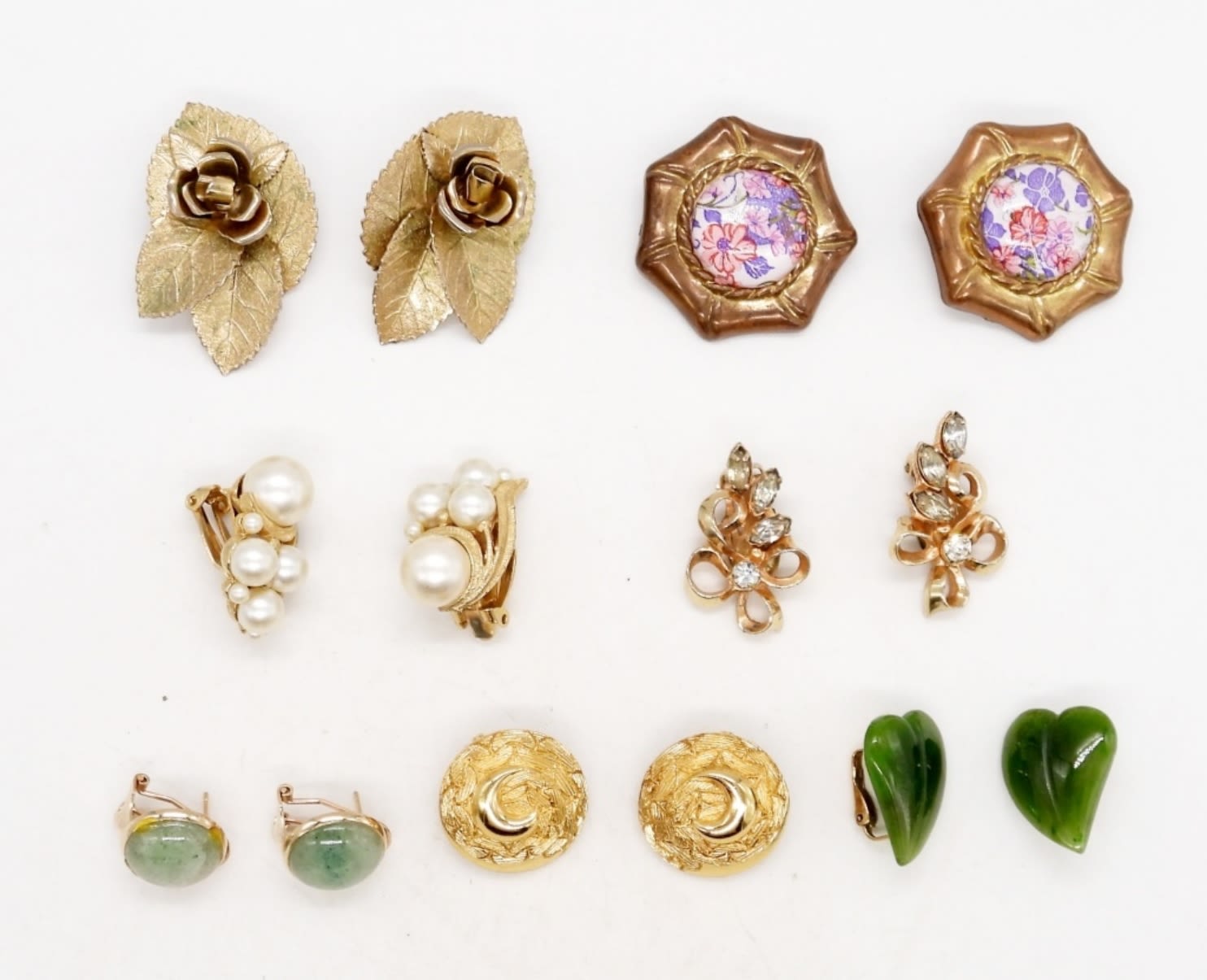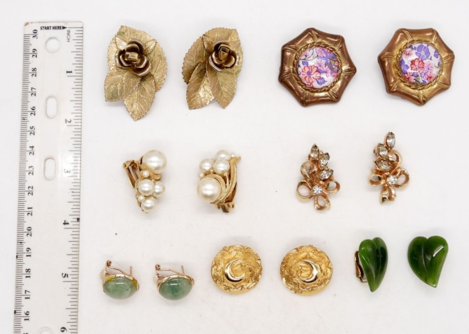 CLIP-ON & PIERCED, GOLD TONE, NATURAL STONE, FAUX PEARL & GEMSTONE – (1) STAMPED “MONET” – (1) STAMPED “KRAMER”