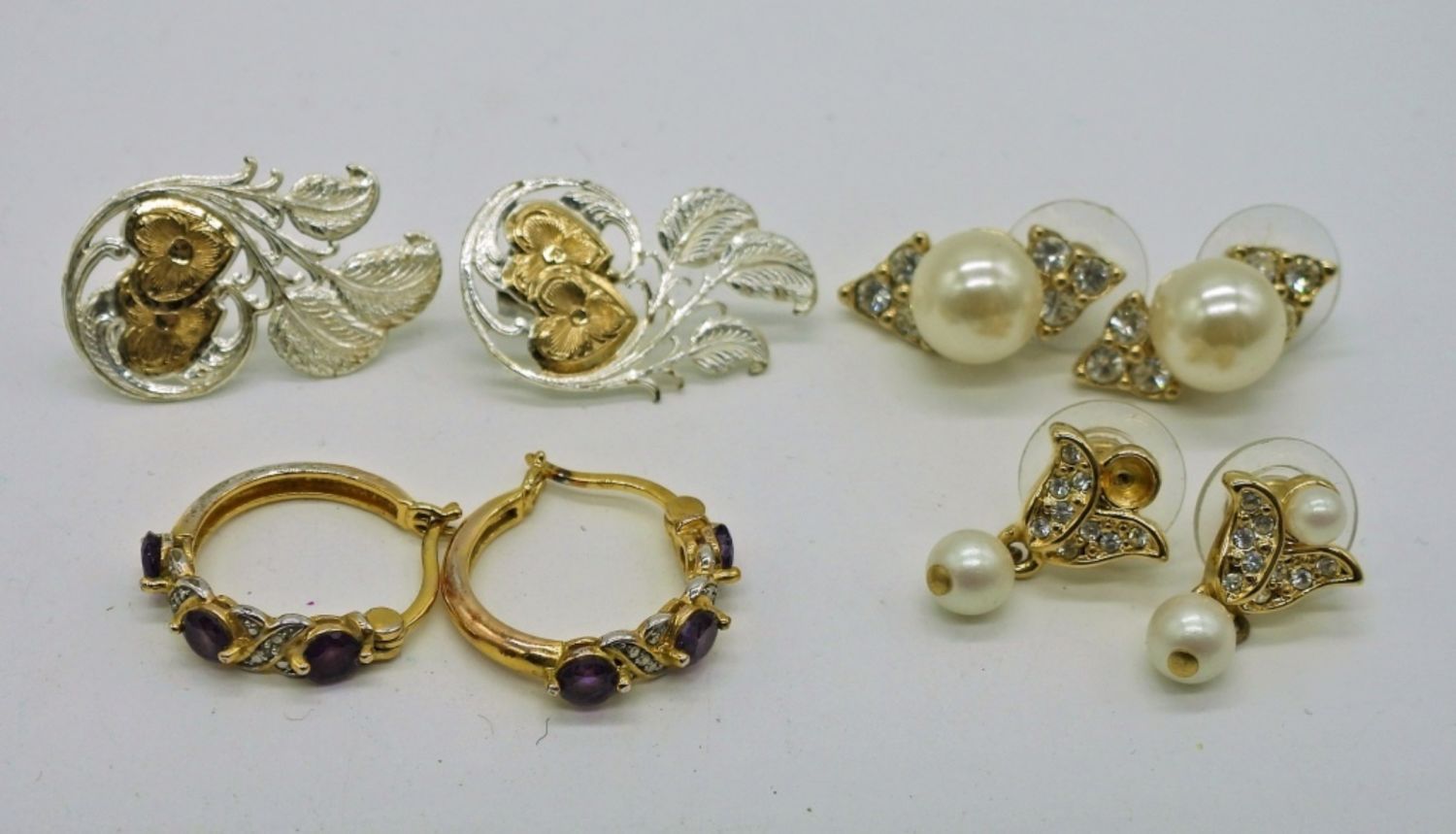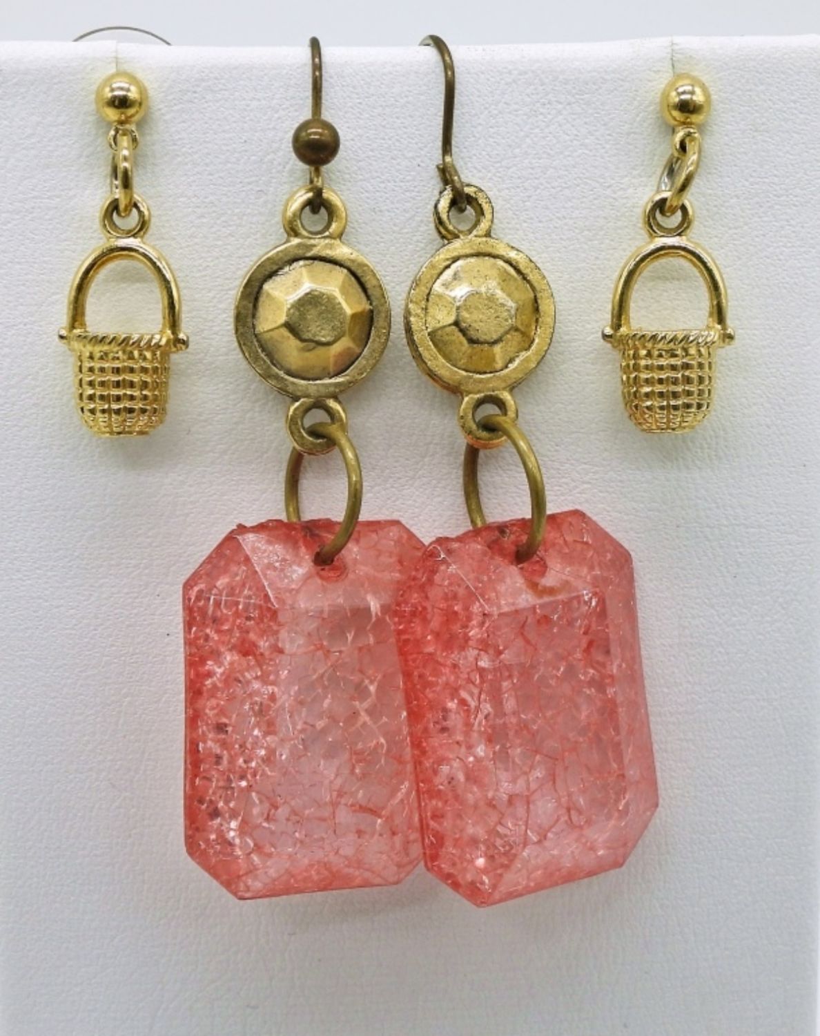 Gold Tone Pierced Earrings with Gemstones, Rhinestones and some fun Shapes.
