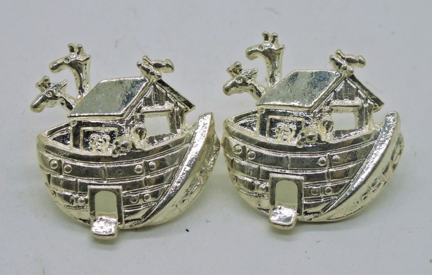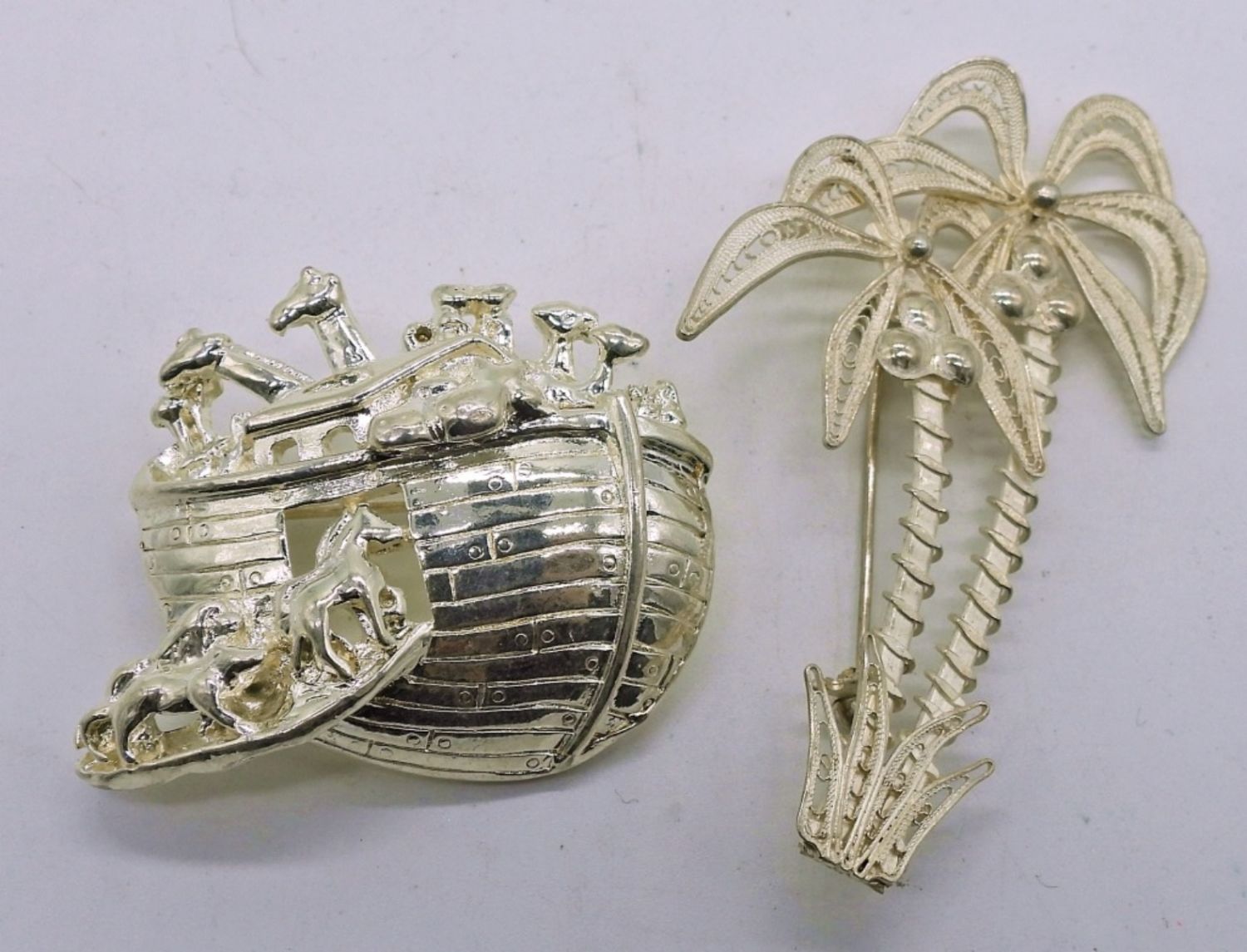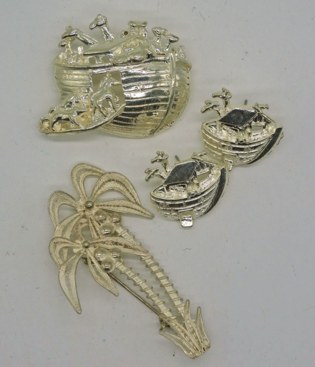 “The Ark” Silver Tone Pierced Earrings and Brooch as well as a Palm Tree Brooch.
