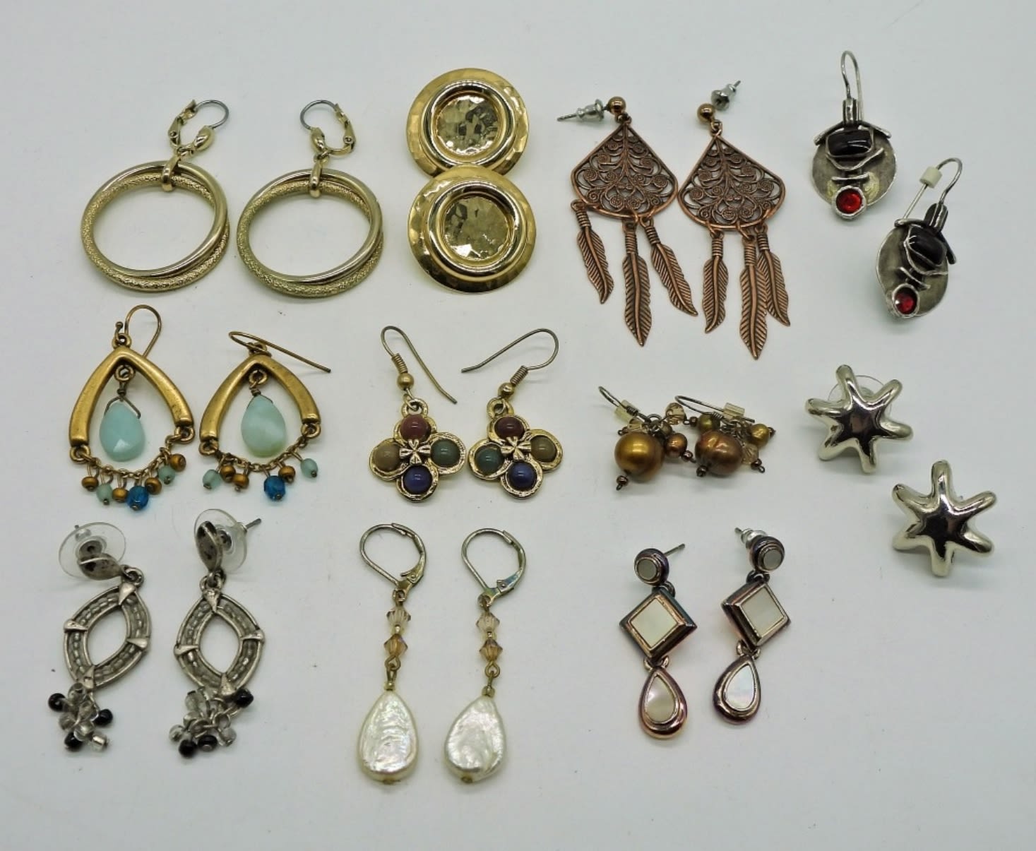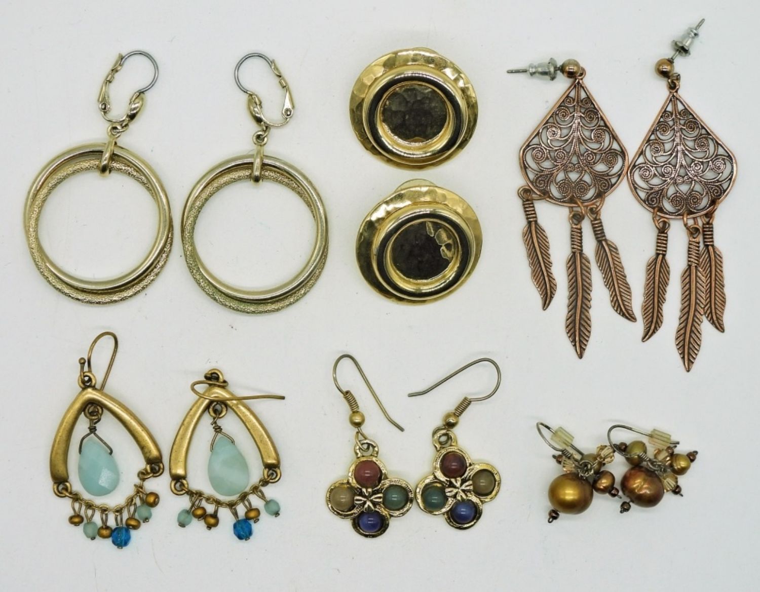 Copper, Silver & Gold Toned Pierced Earrings in Several Styles.