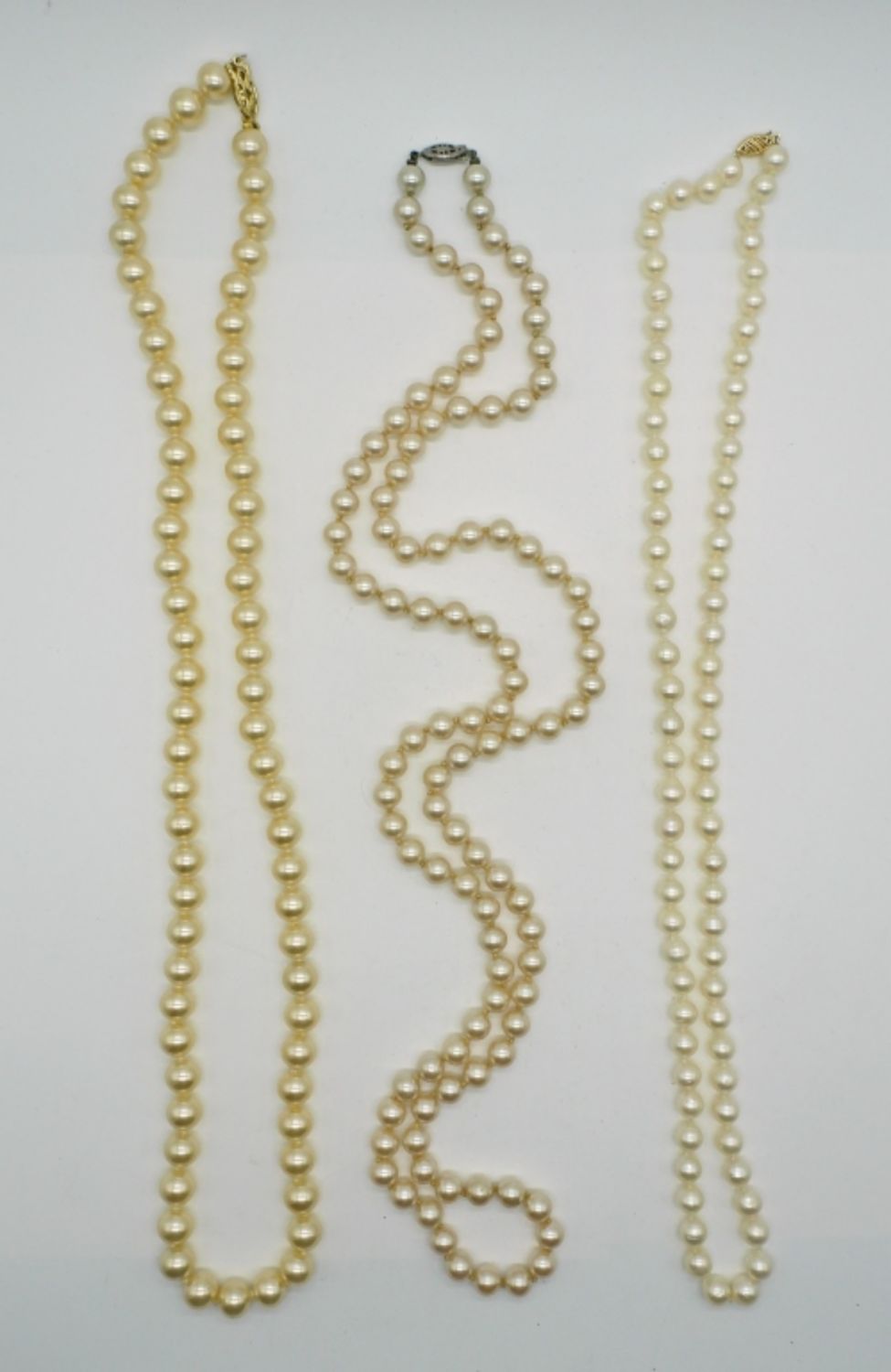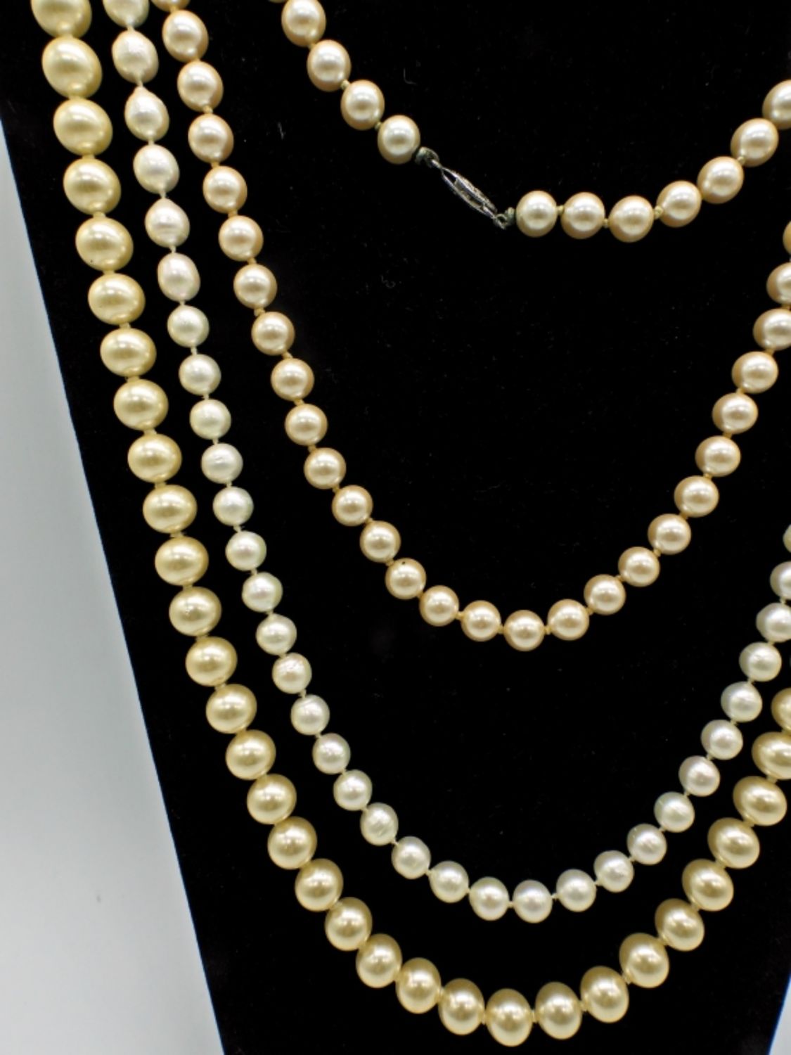 Various lengths 26-35 inches long. All have safety clasps. Heavy necklaces.