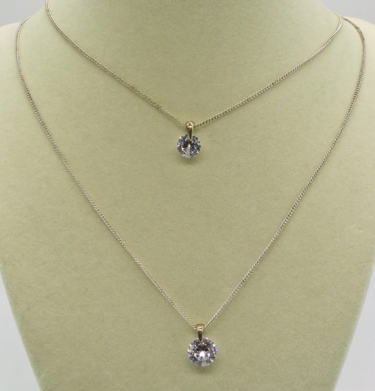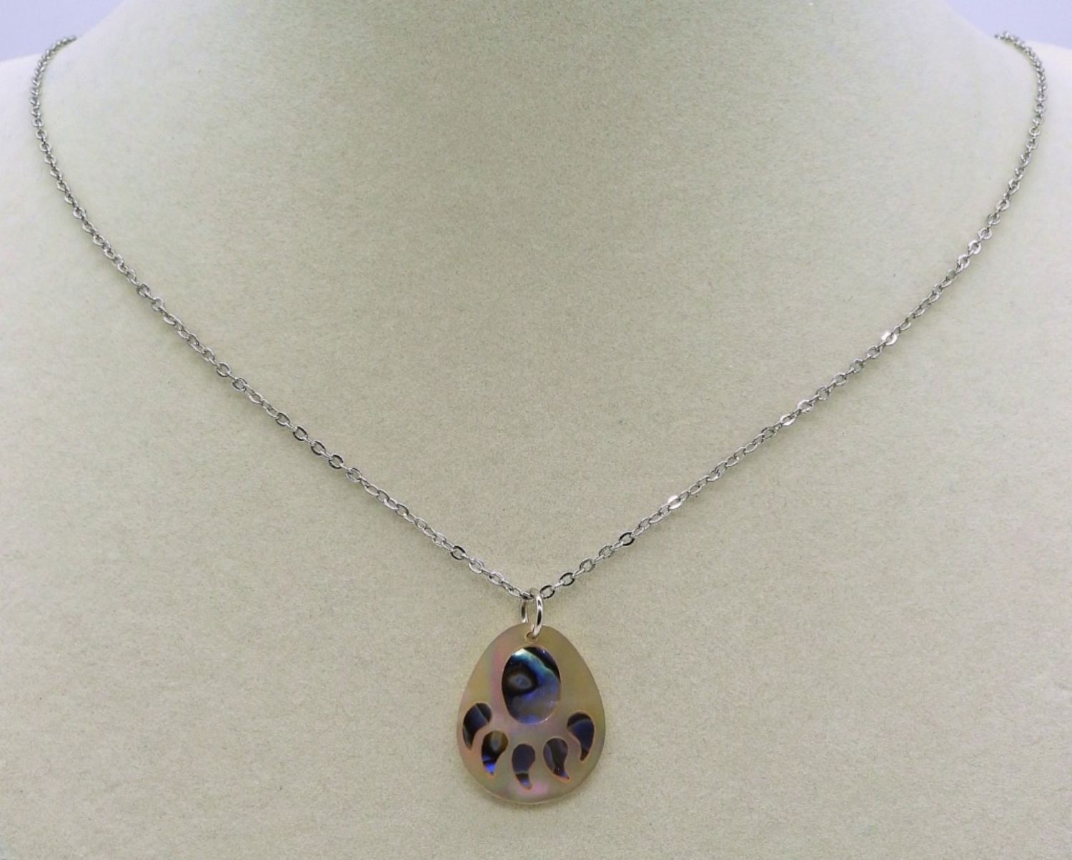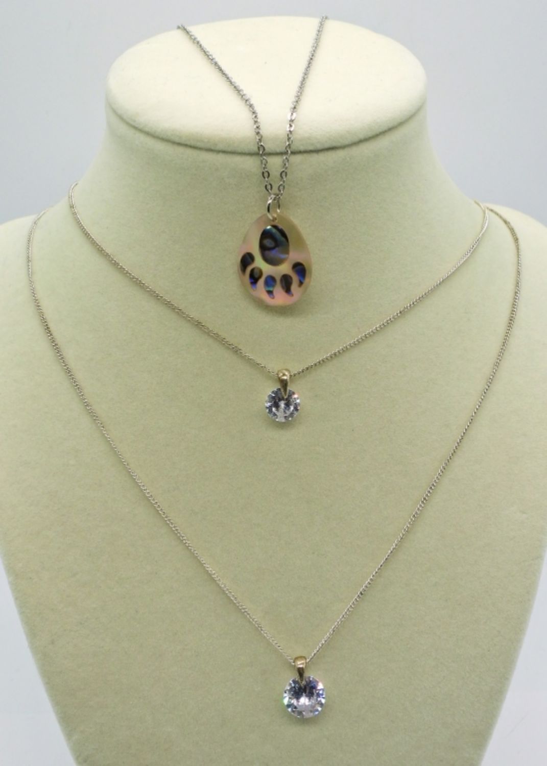 Silver Tone 18 inch Necklace with Bear Paw Pendant & 18 inch Double Strand Silver Tone Necklace with two Rhinestone Pendants.