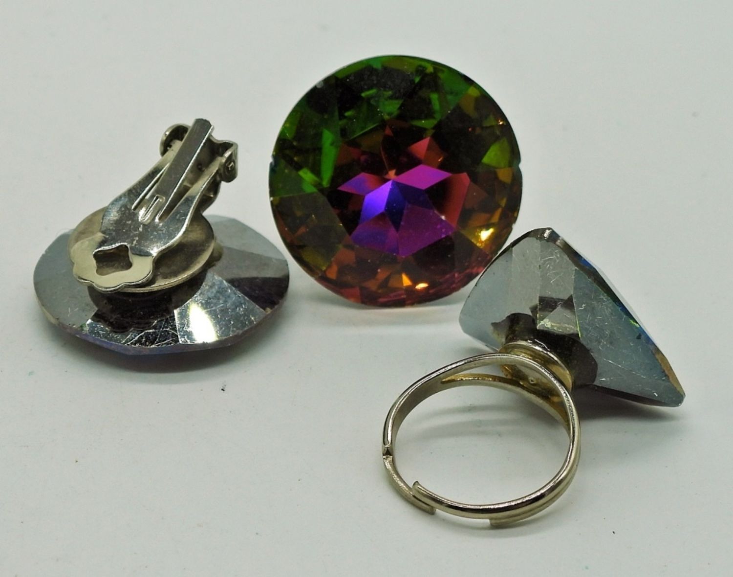 Mystic Quartz Colored Clip On Earrings & Adjustable Ring. Large Gemstones!
