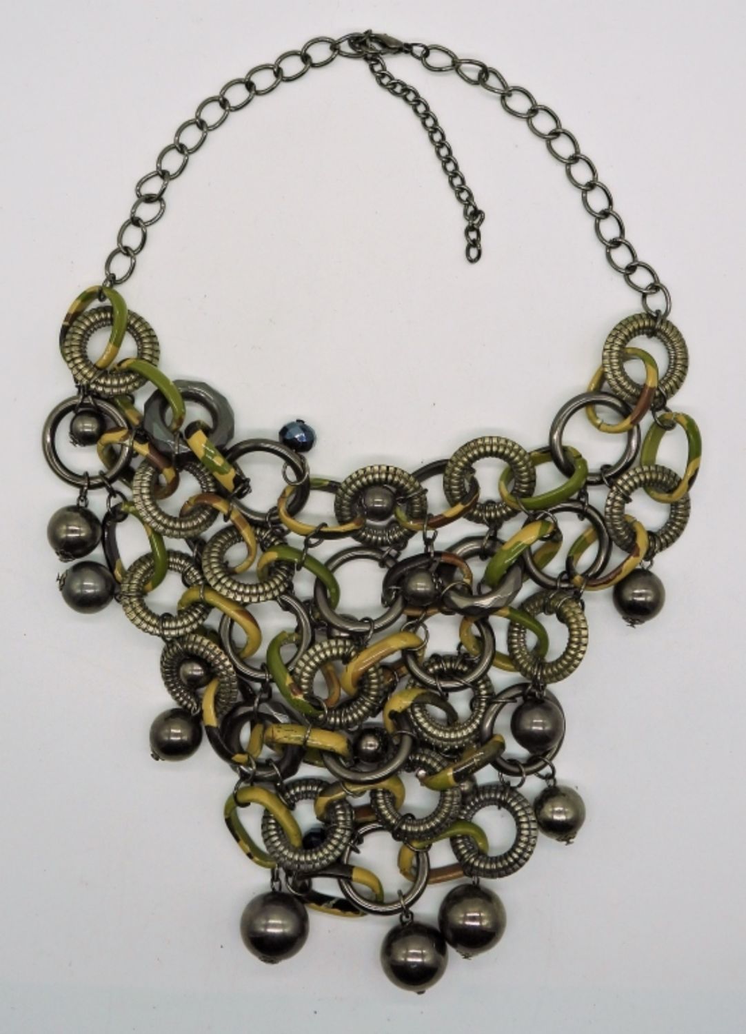 20 inch Chain Mail Style Necklace with Camouflage Beading.