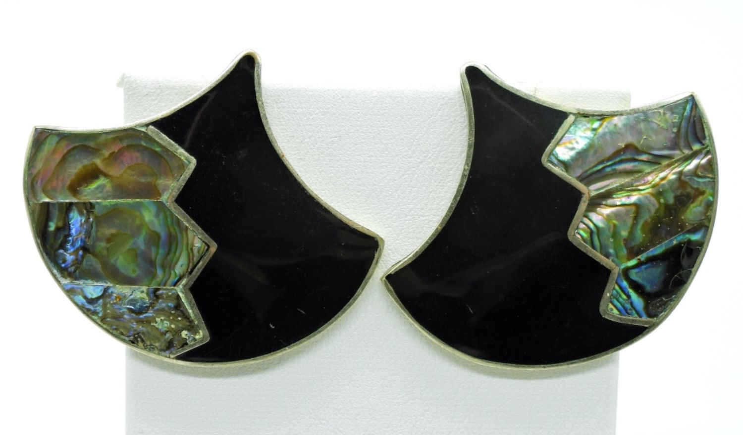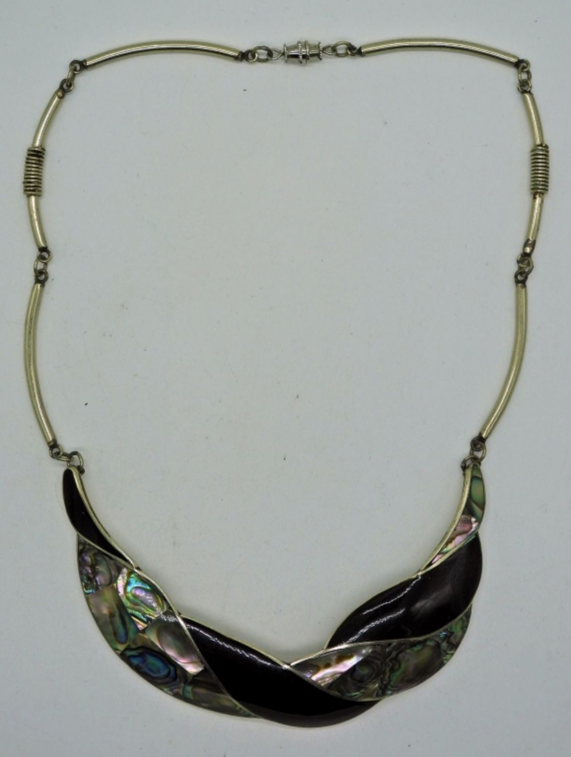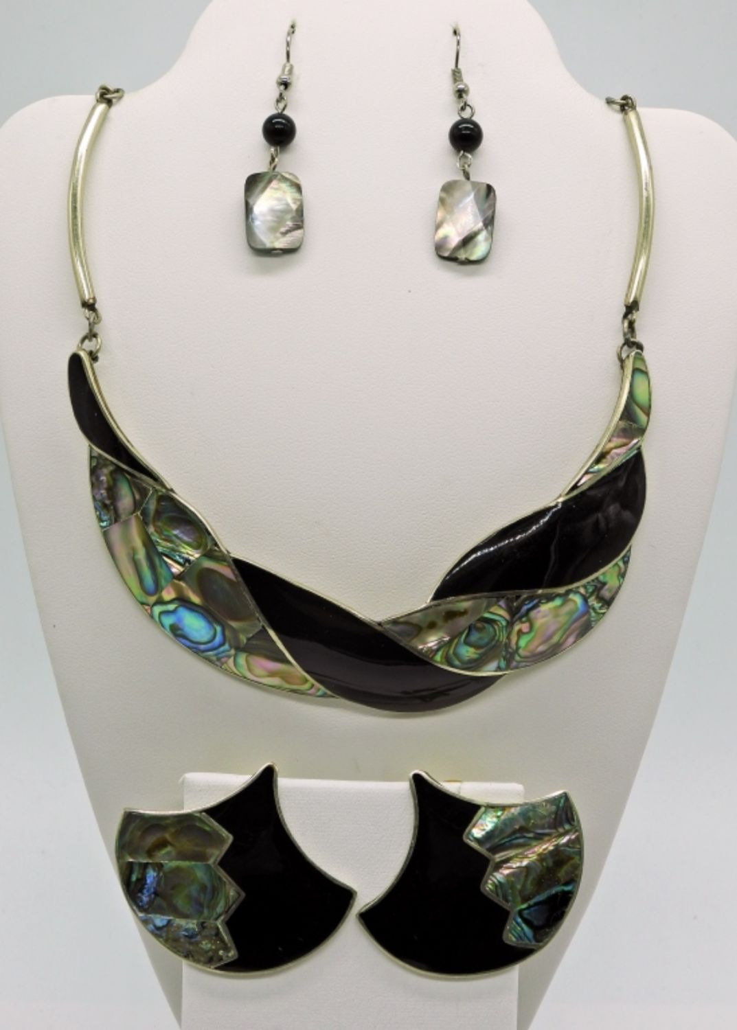 Black Enamel & Shell inlay Necklace with Matching Pierced Earrings (2 Pair)