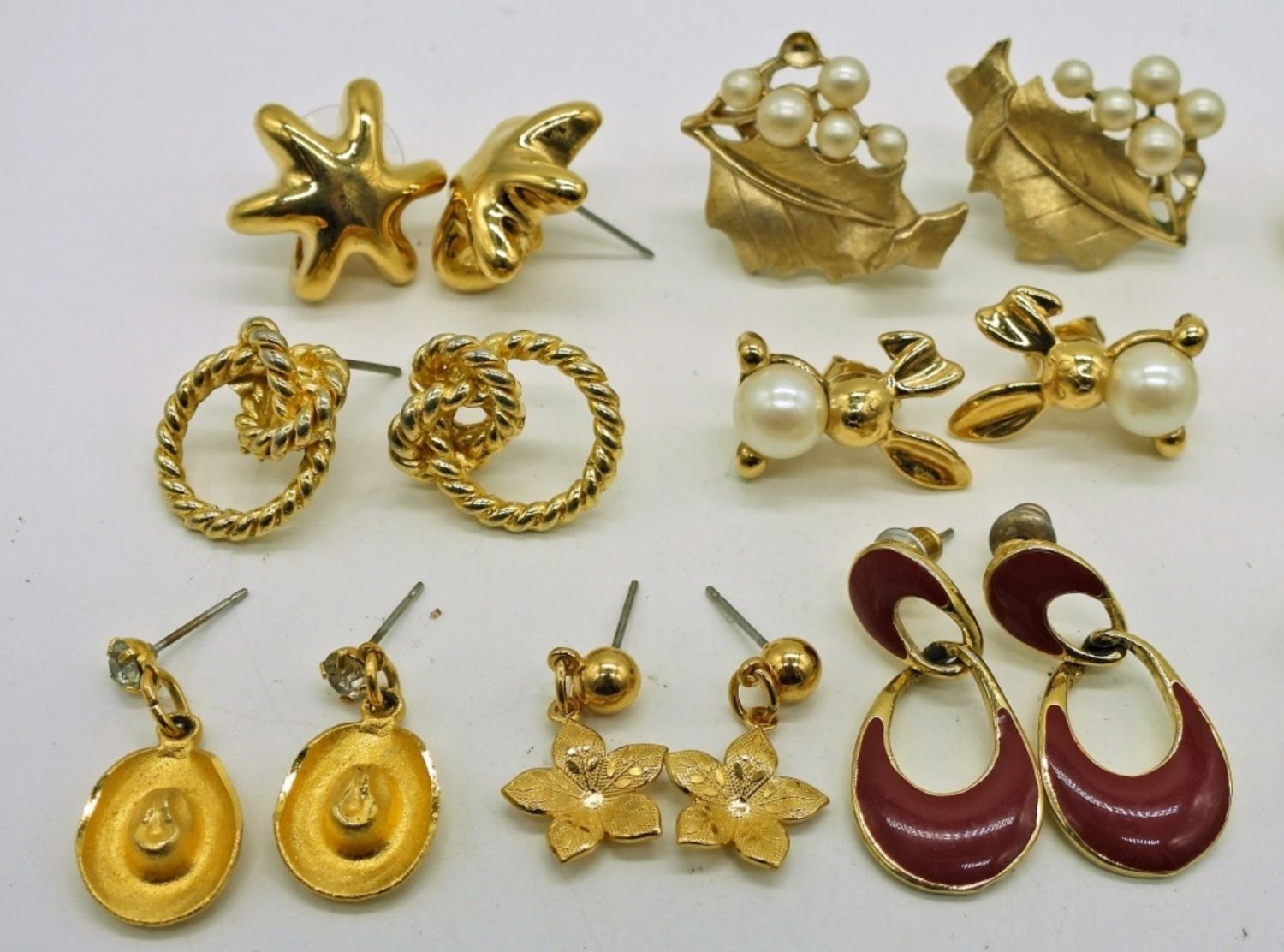 11 sets of Gold & Silver Tone, Beaded, Enameled & Faux Pearls