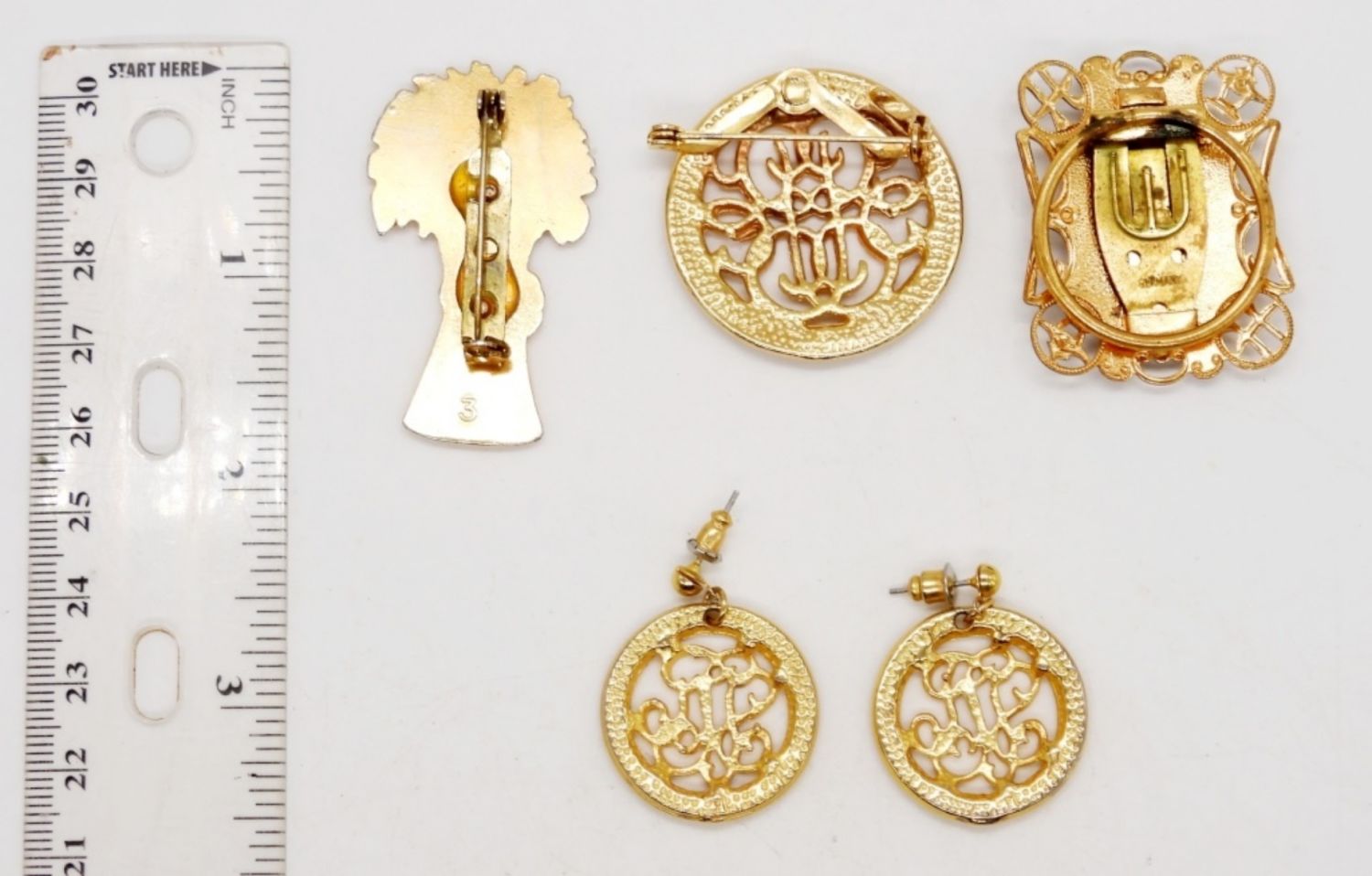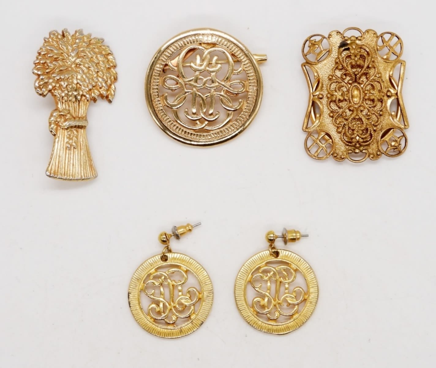 GOLD TONE VINTAGE BROOCHES WITH MATCHING PAIR OF EARRINGS