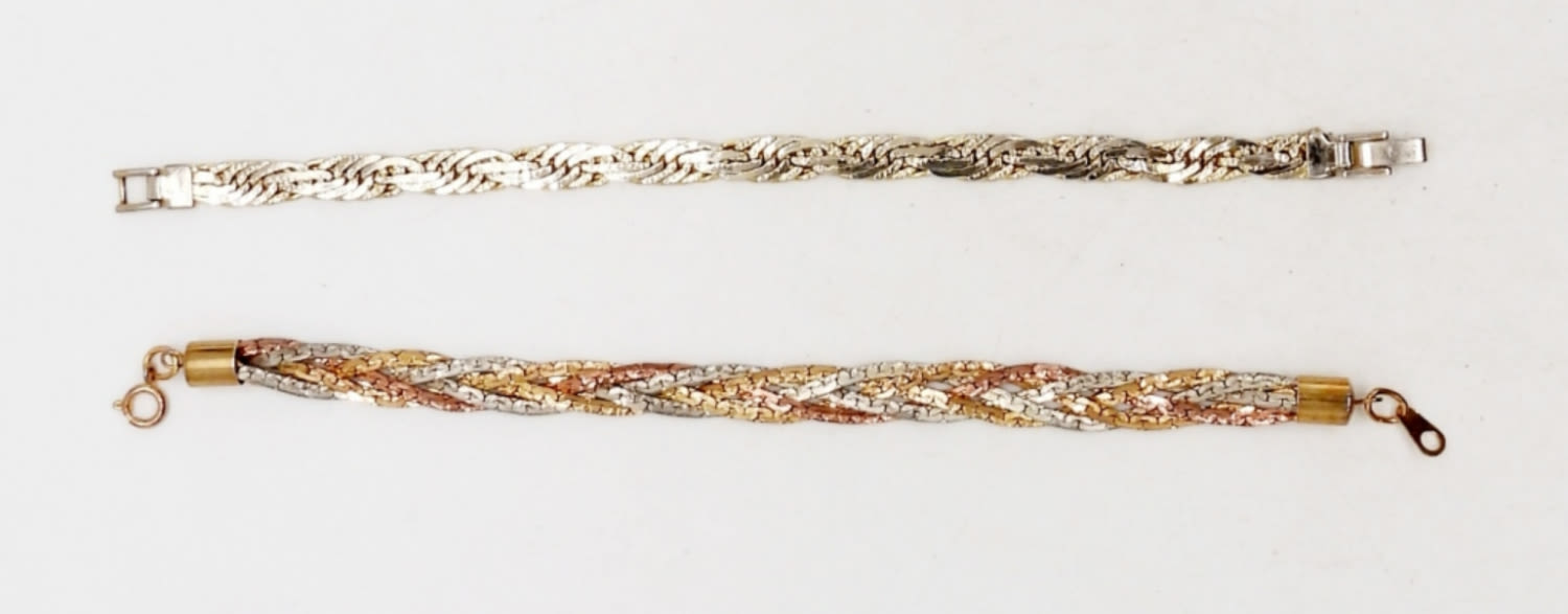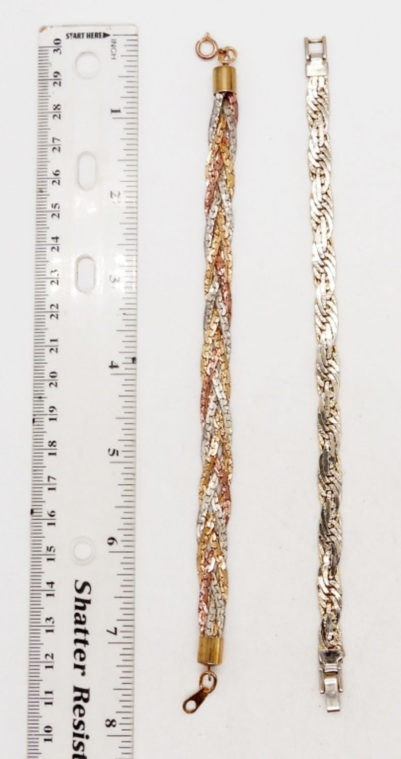 TRI-TONE BRAIDED CHAIN, WOVEN GOLD TONE BRACELETS