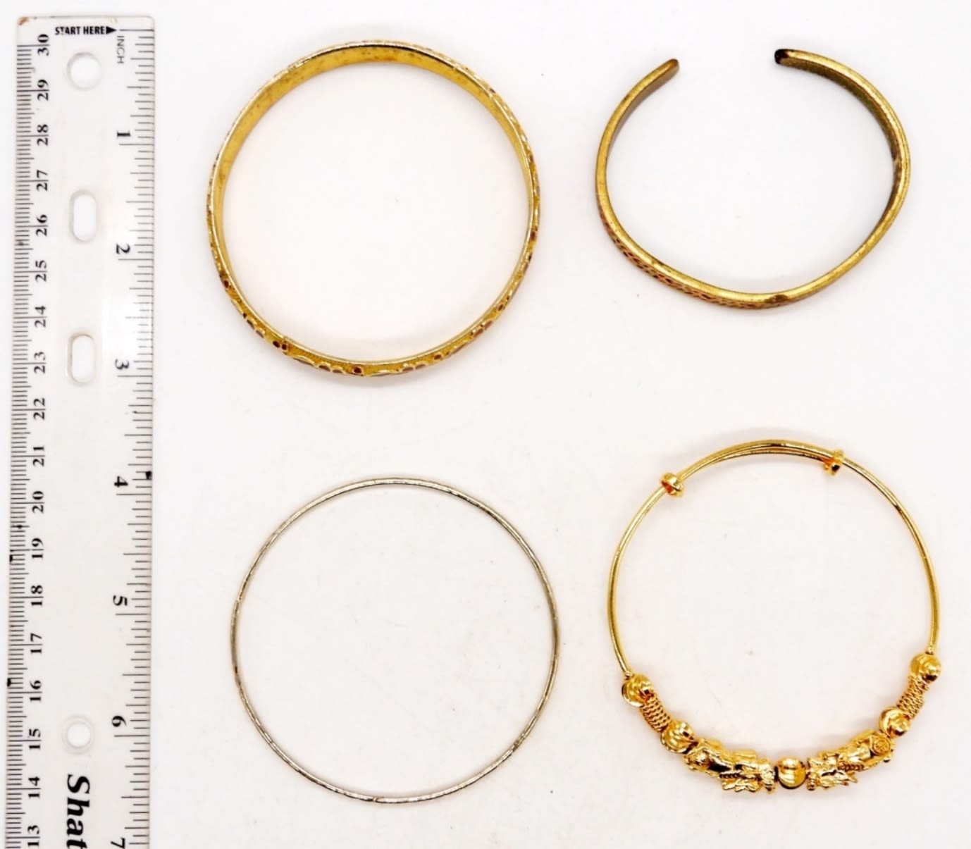 BANGLE & CUFF STYLE BRACELETS – ALL DIFFERENT WITH UNIQUE ETCHED DESIGNS & SLIDER BEADS