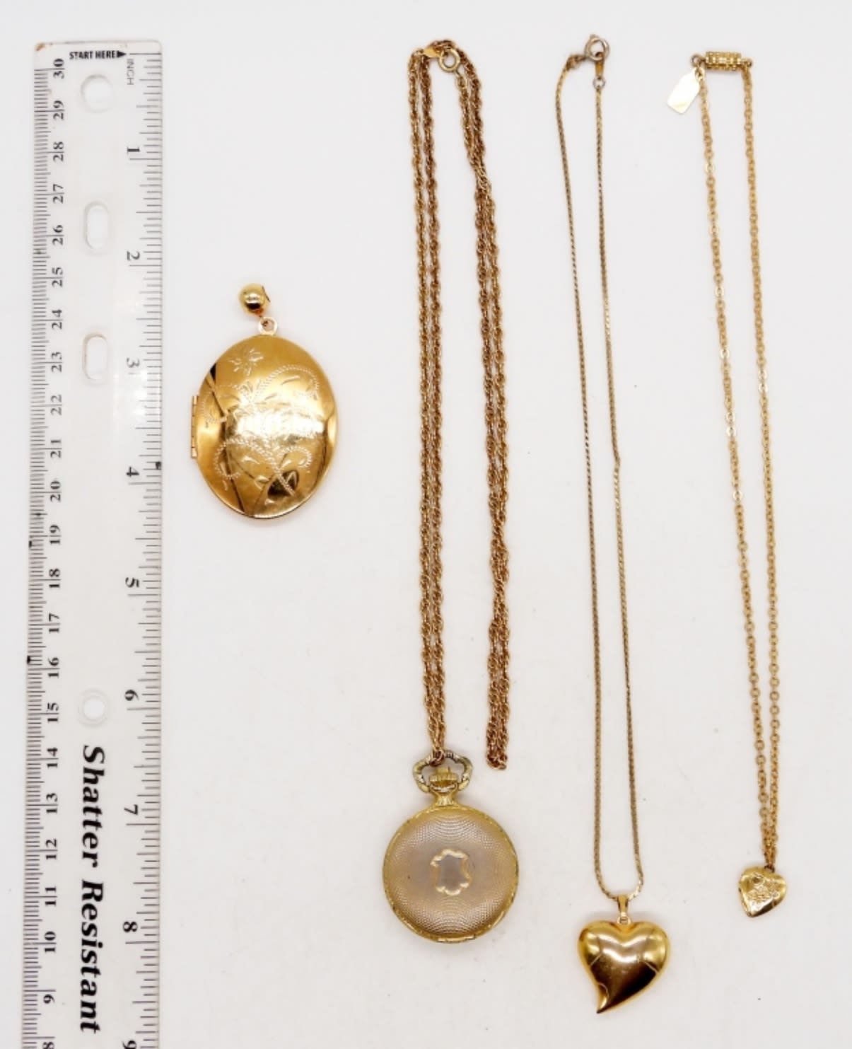 WITH (3) GOLD TONE CHAINS 14″-26″ LENGTHS