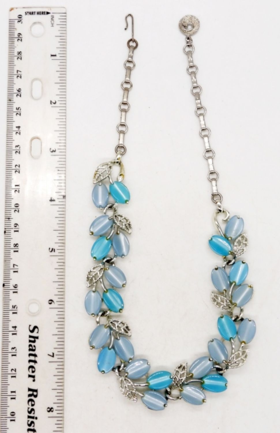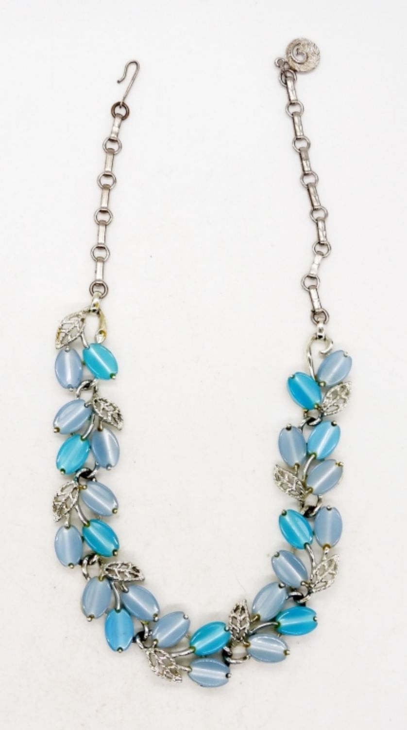LISNER STAMPED SILVER TONE 16 INCH CHOKER WITH SMOOTH LIGHT BLUE NATURAL STONES