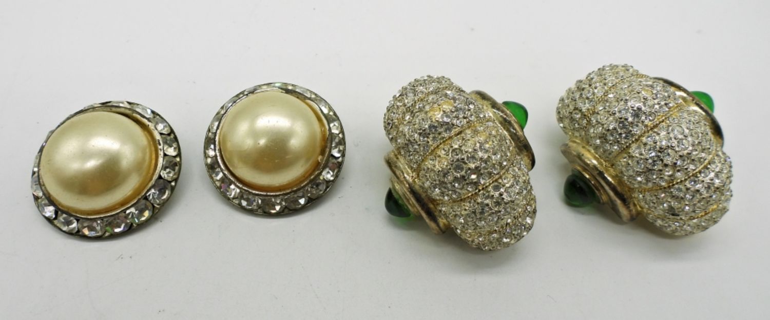 One pearl pair, and one rhinestone pair.