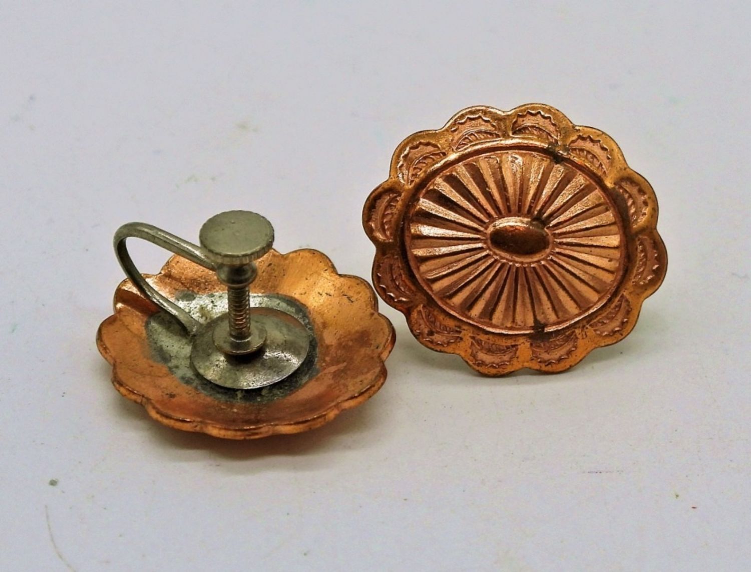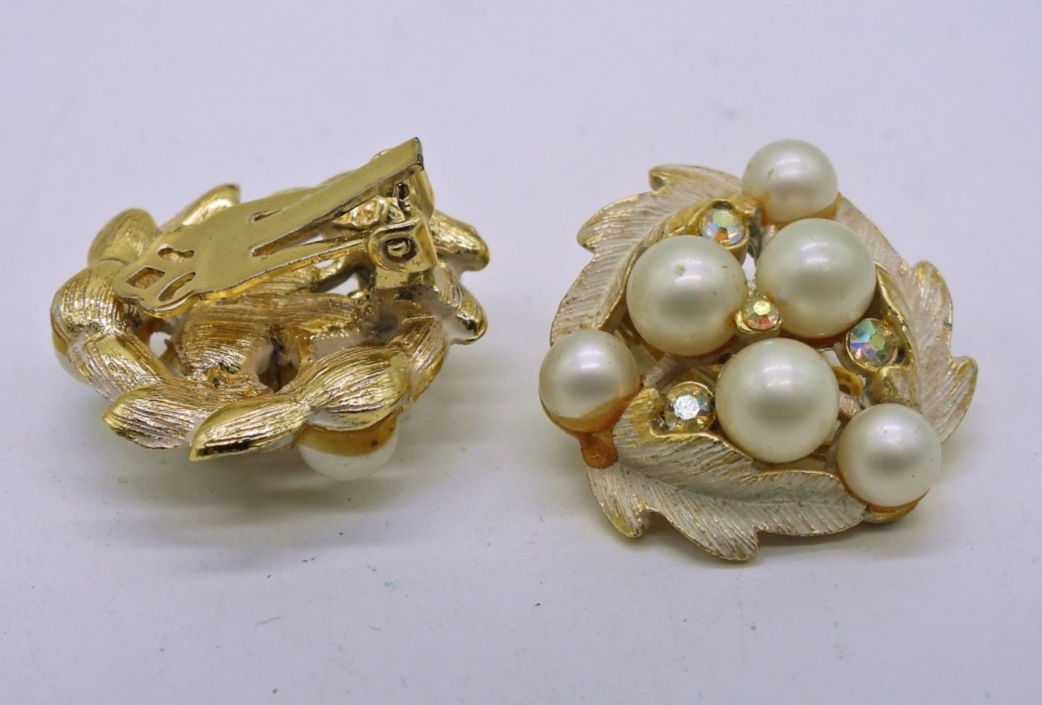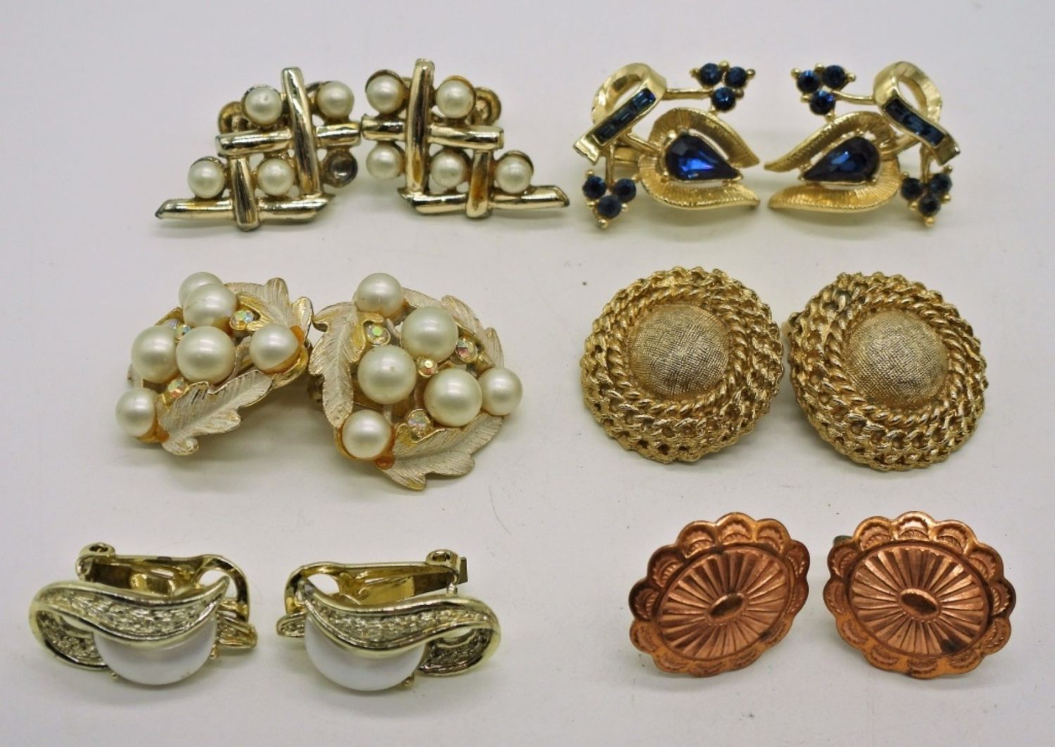 6 Pair Vintage Gold & Copper Toned Clip On Earrings. Pearl, Blue Gemstone & Textured.