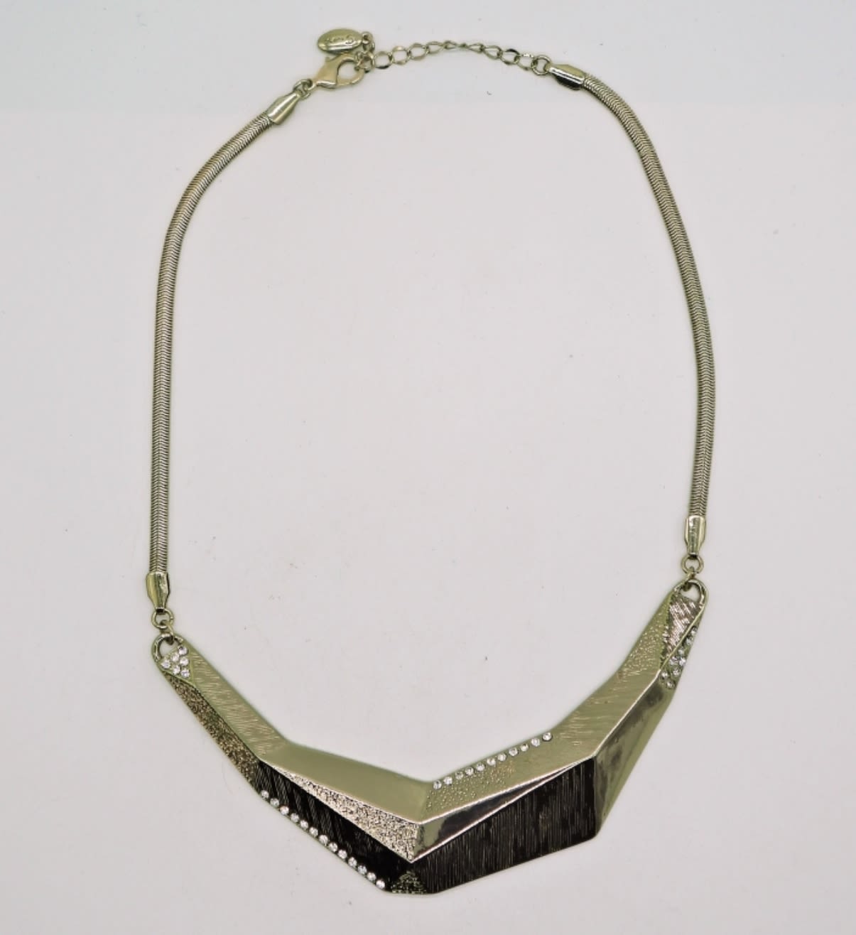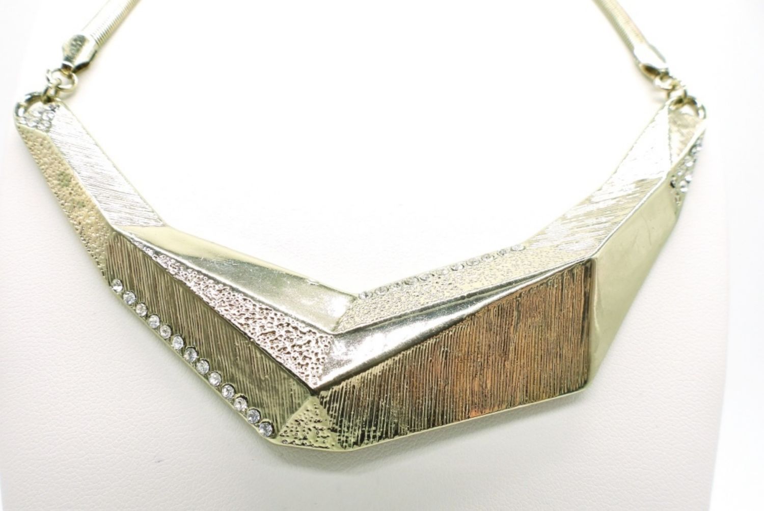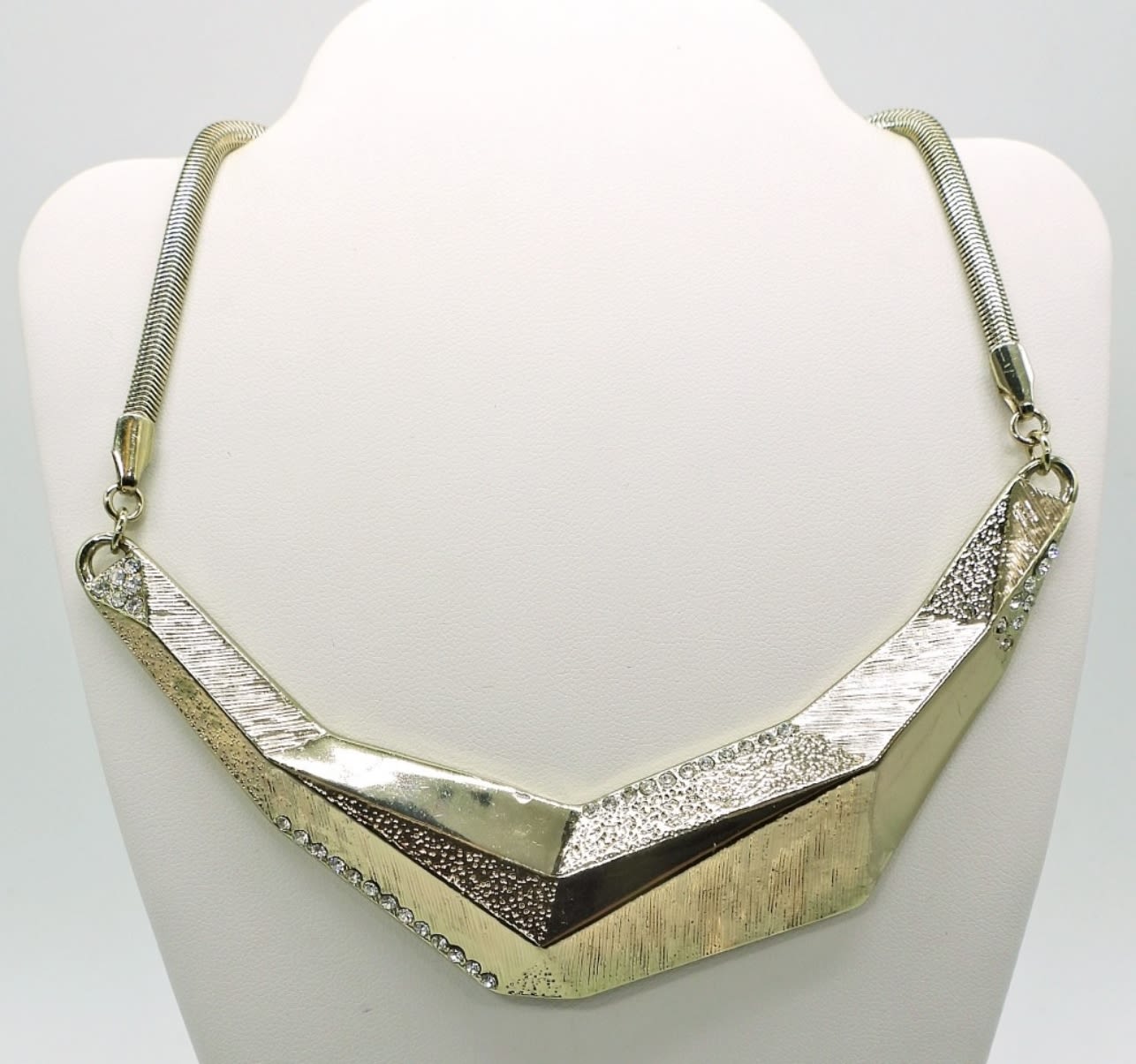 Gold Toned “Statement Piece” Necklace, Rhinestone Detailing, Adjustable 17 inch length.