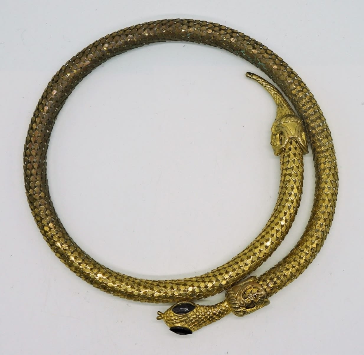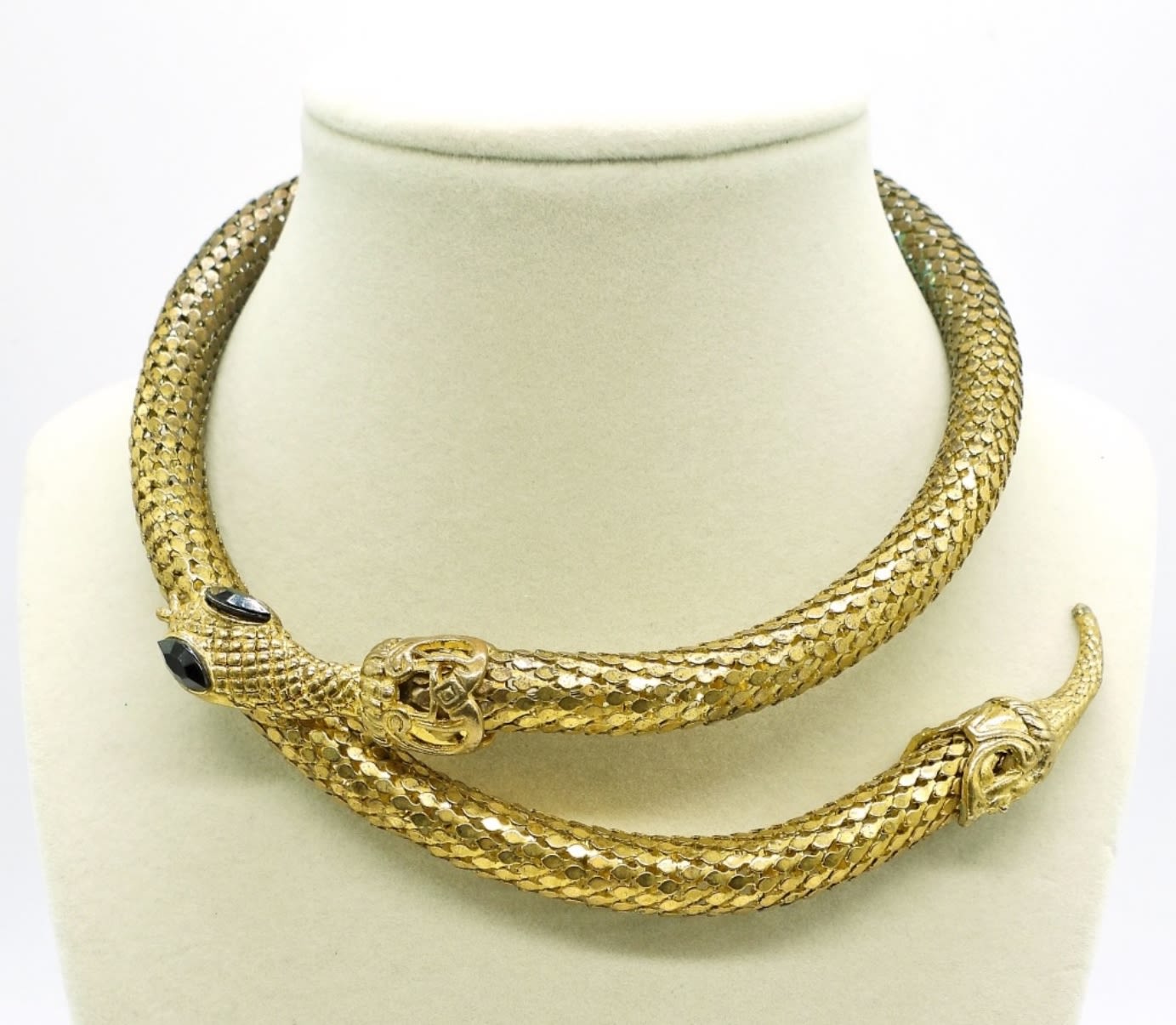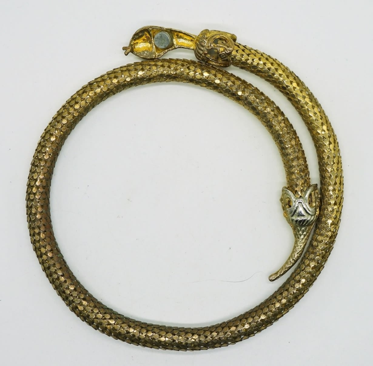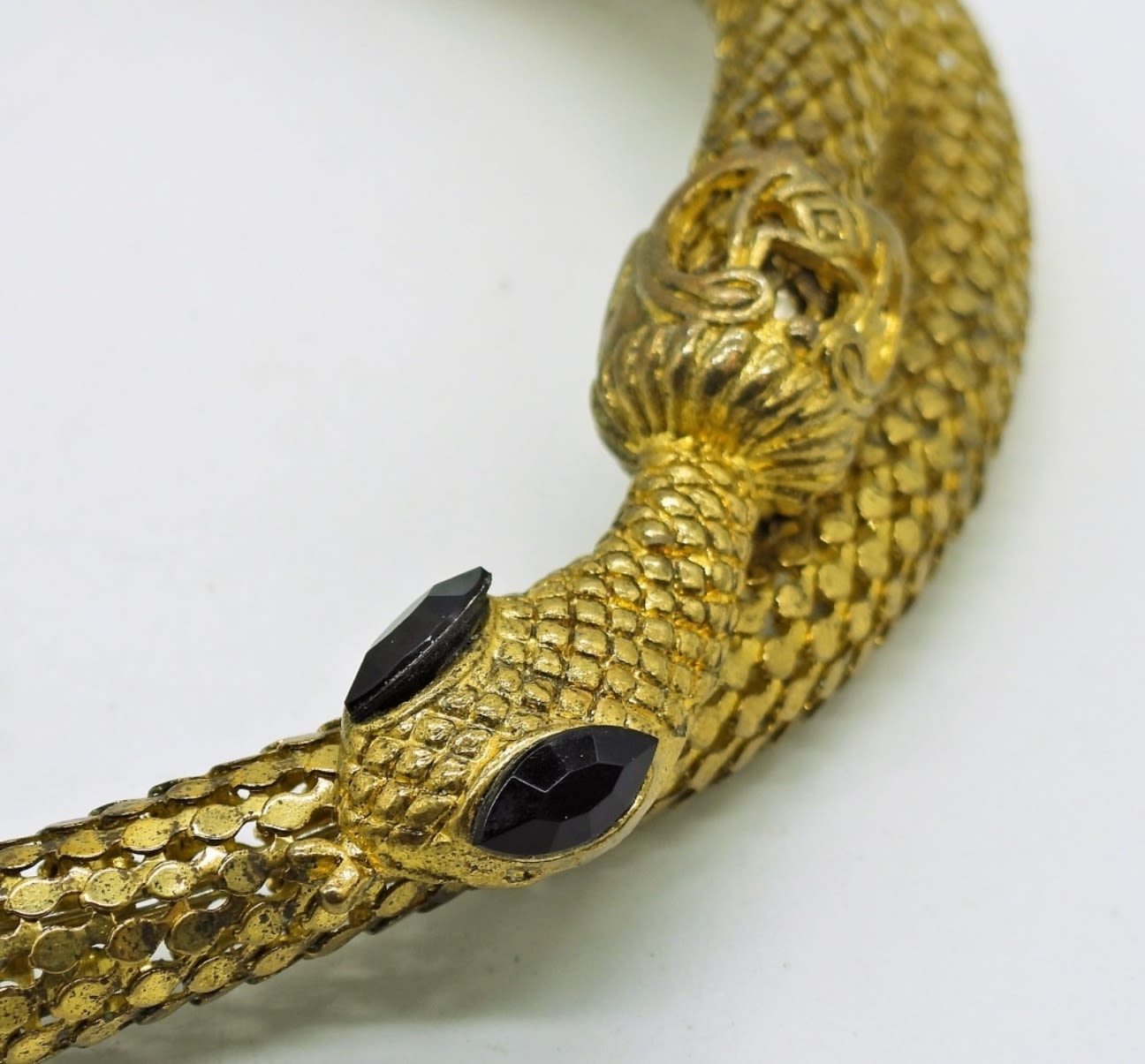 Vintage Gold Tone, Magnetic Clasp Snake Choker. Black Rhinestone eyes. 15 inches.