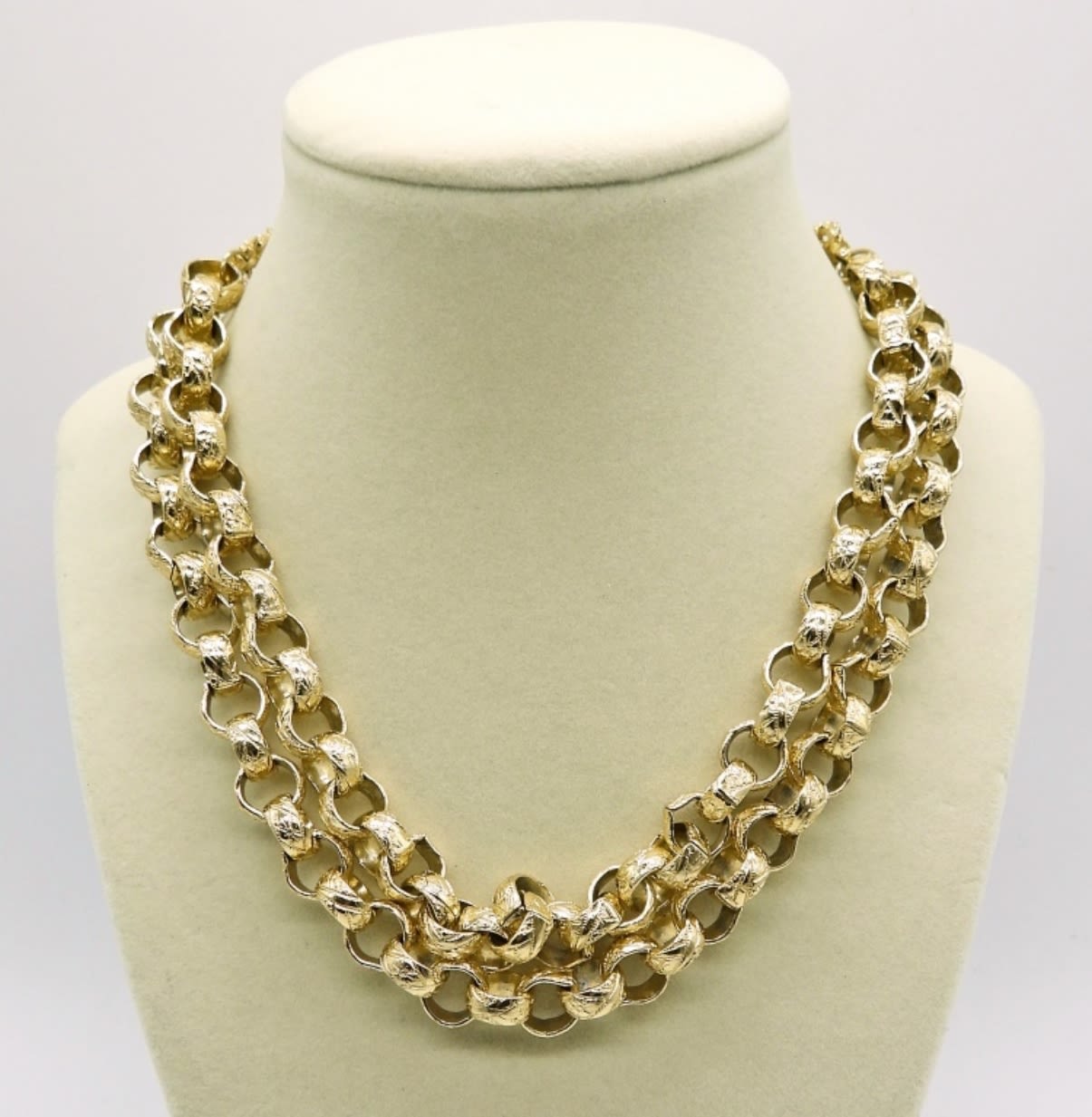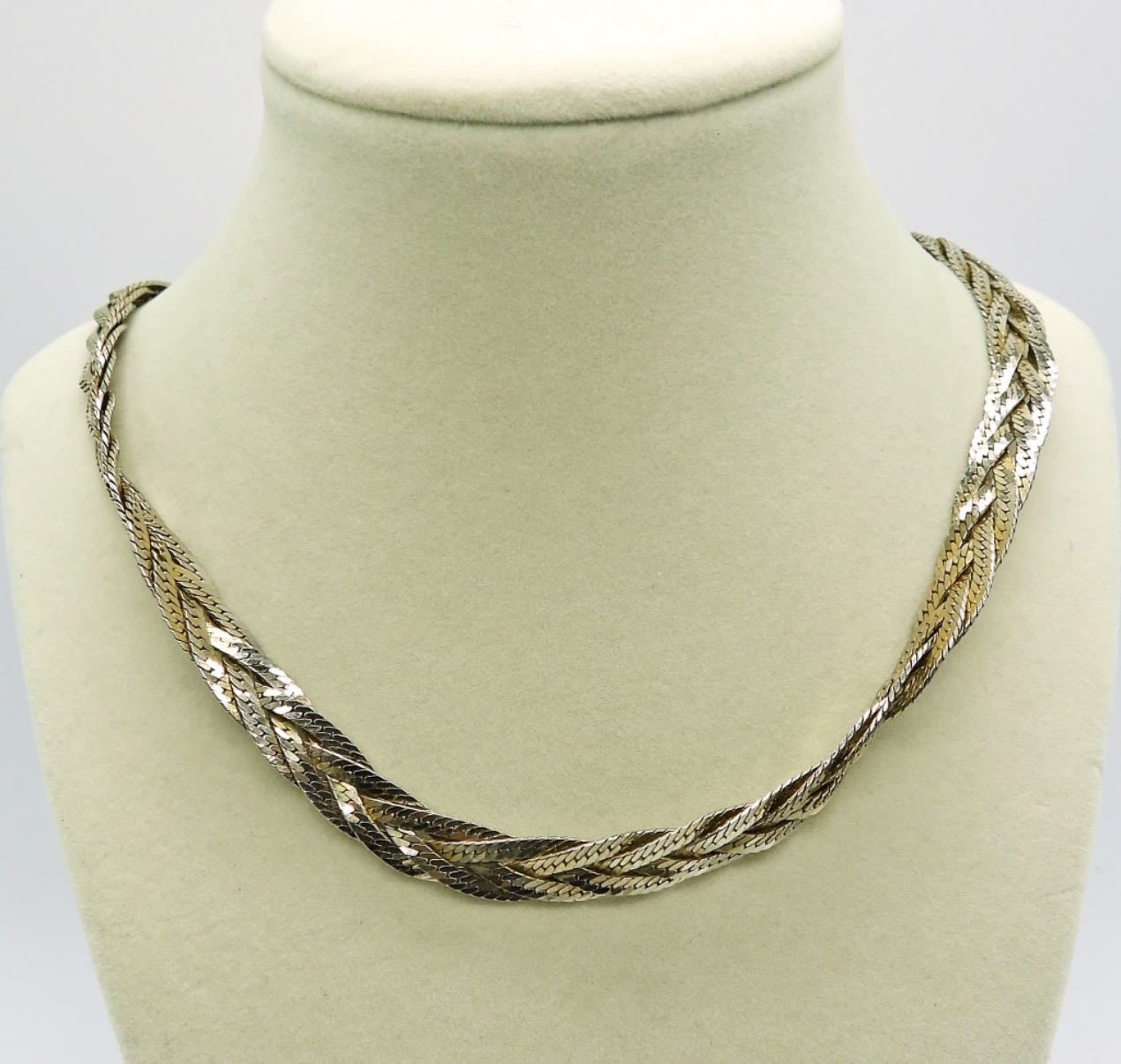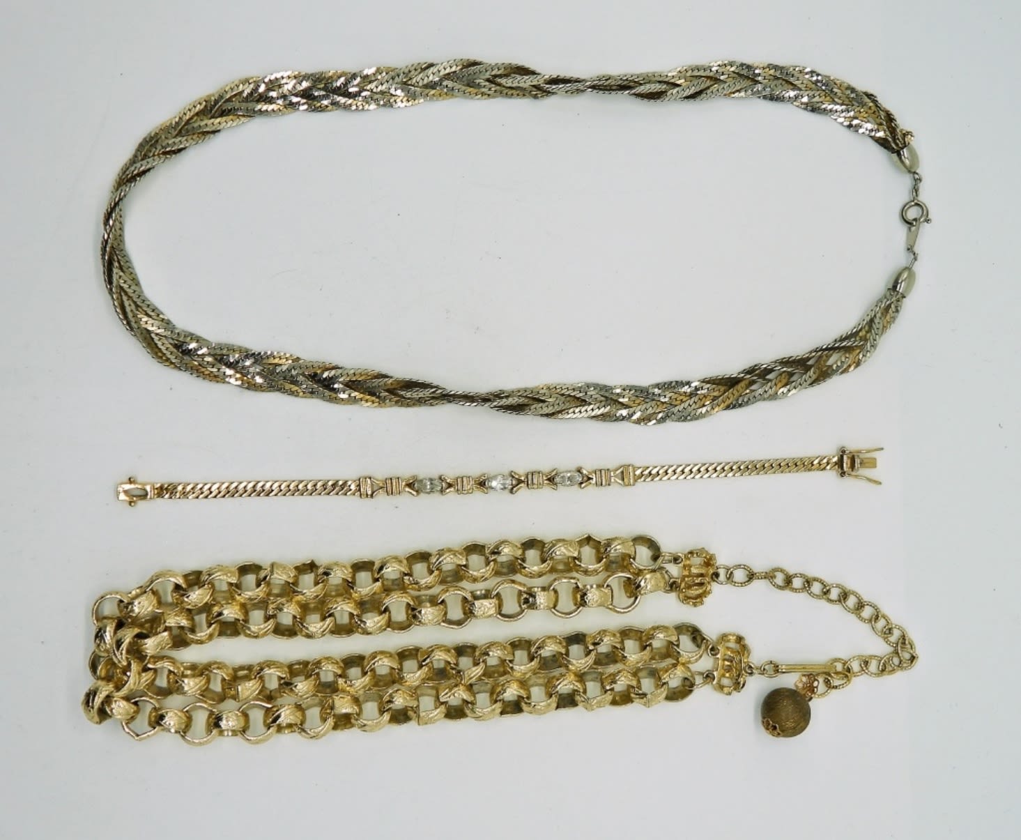 Gold Toned, Double strand Adjustable 17 in Necklace, Braided 3 Strand Chain (18in) & Bracelet with Gemstones (7in).