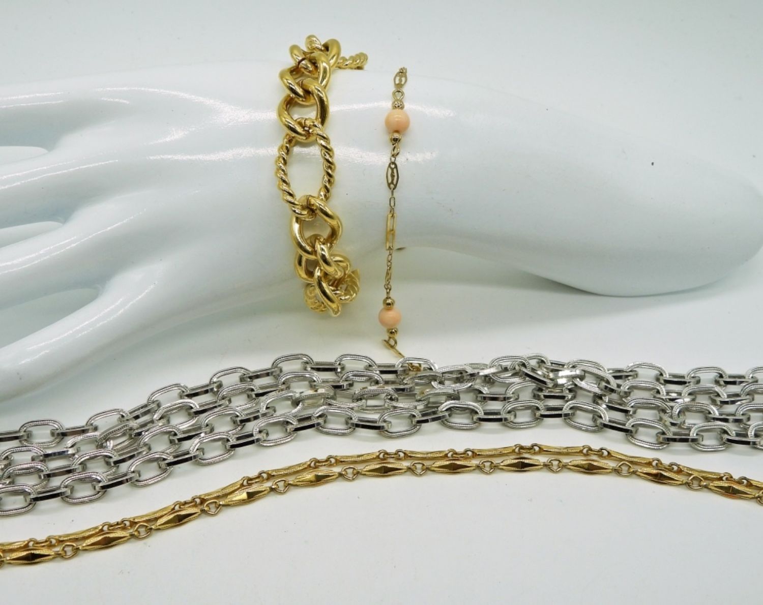 Monet Branded. 26 in Gold Tone Necklace, 52 in Silver Tone Chain Necklace. Gold Tone Chain Bracelets, 7 in.