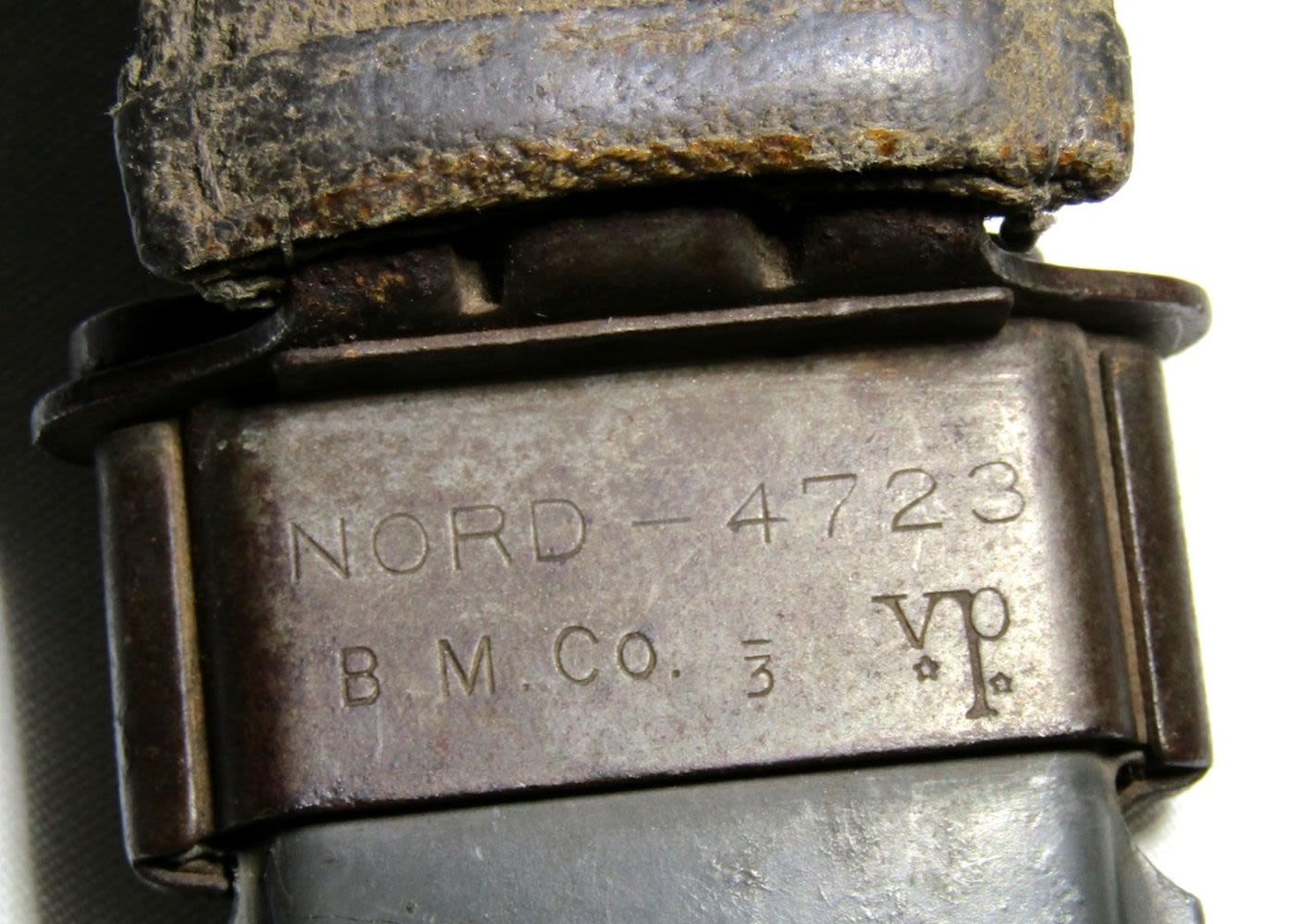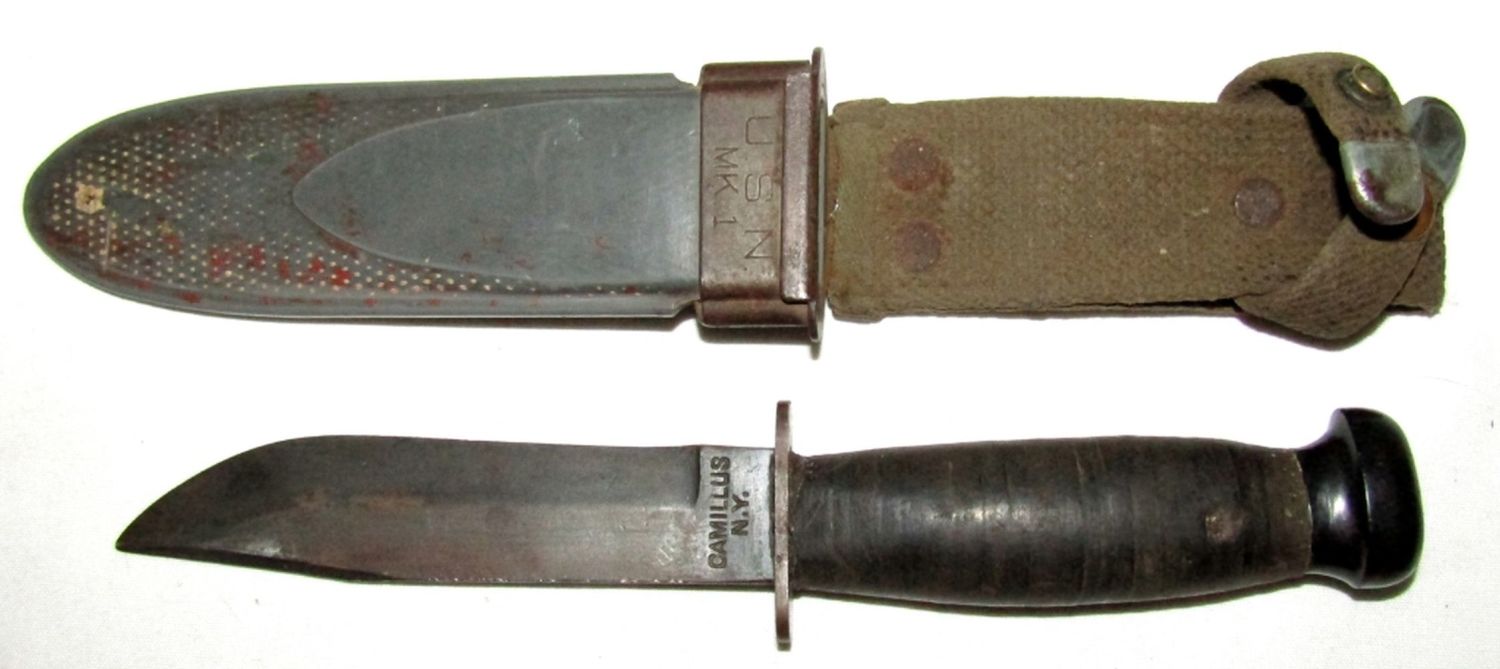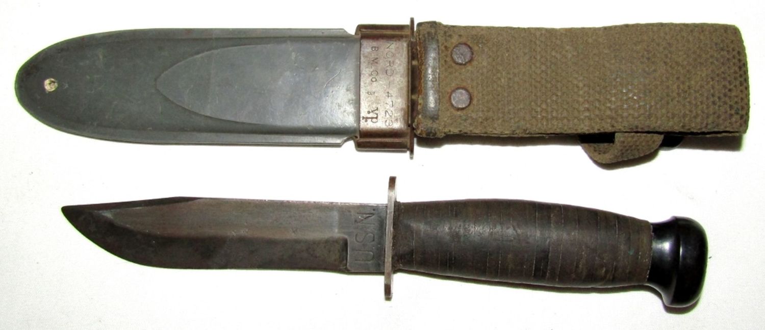 Blade Marked “U.S.N. Camillus N.Y.”, Scabbard Marked “U.S.N. MK.1 Nord – 4723 B.M. Co. VP”; 5″ Blade, 9.5″ Overall.